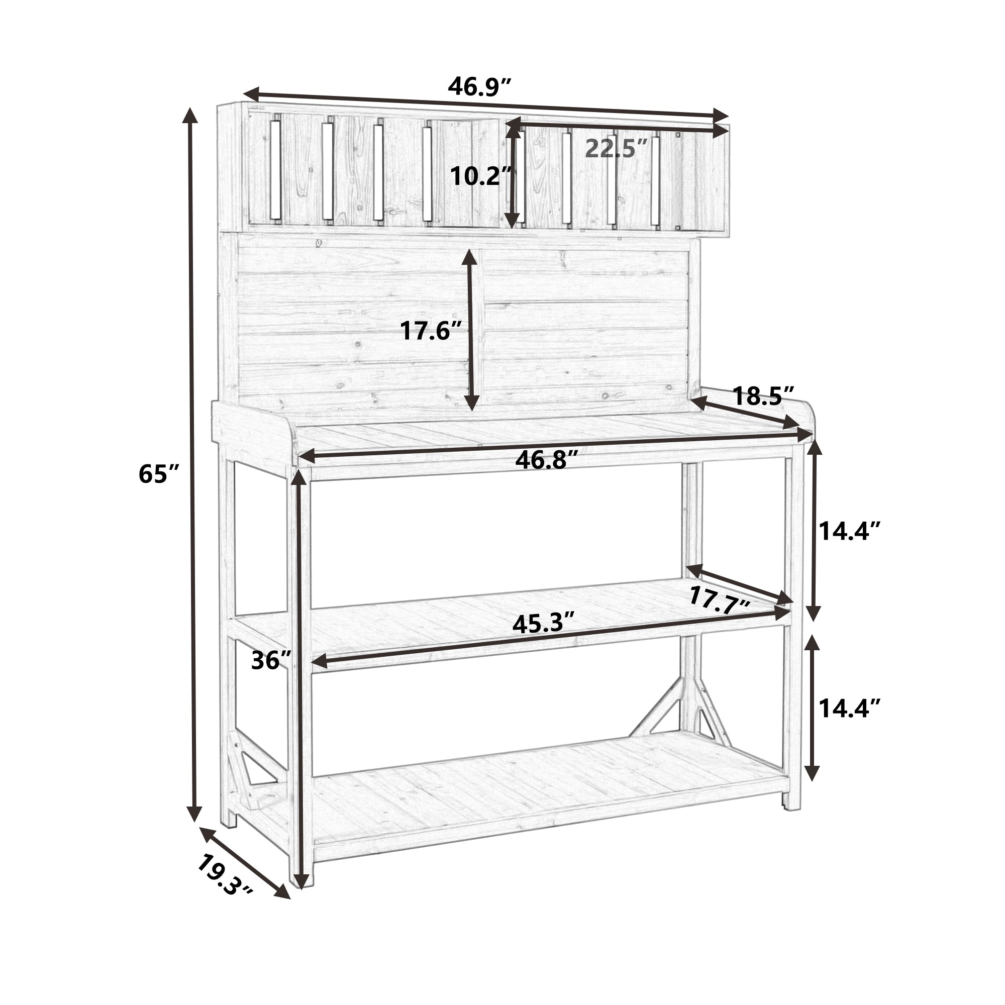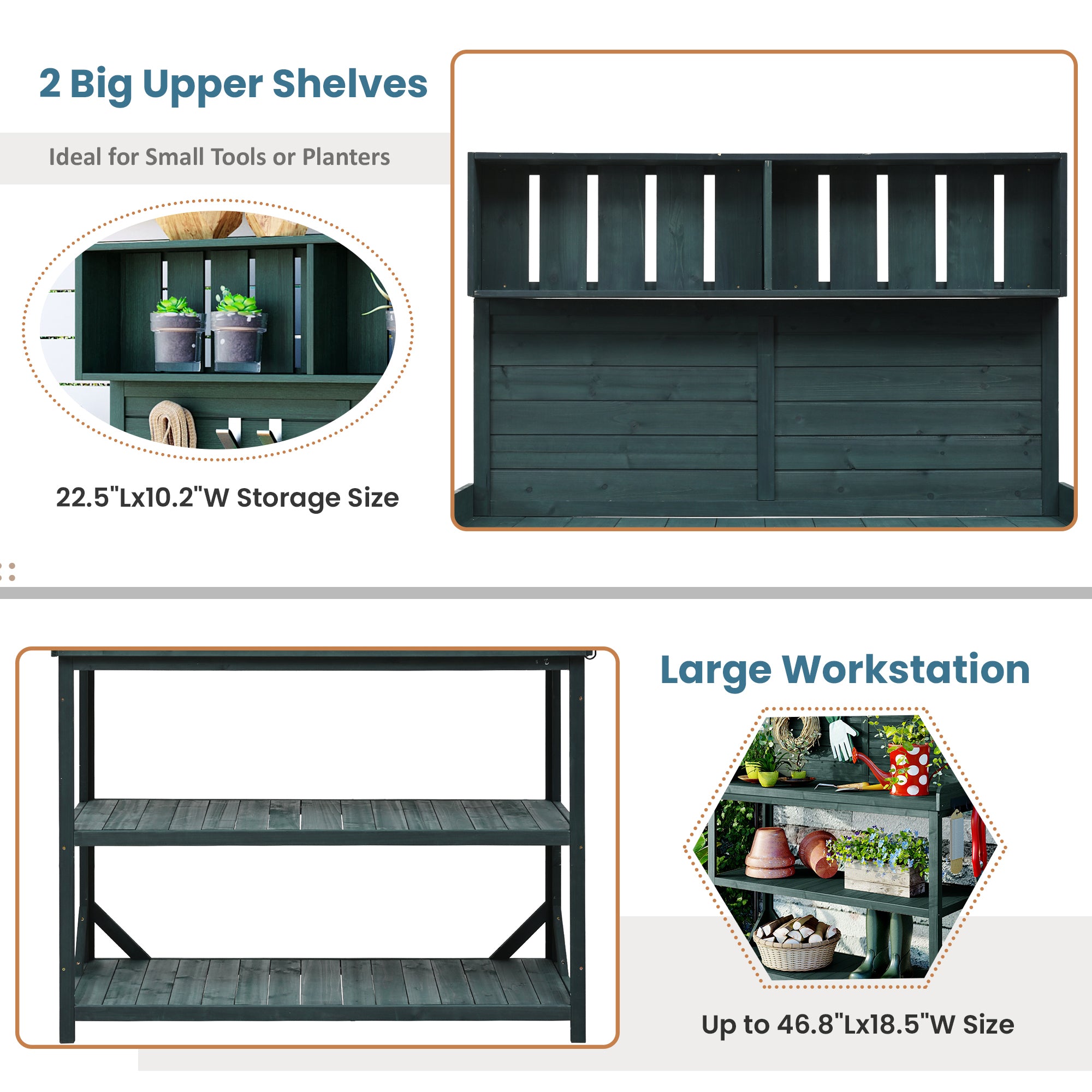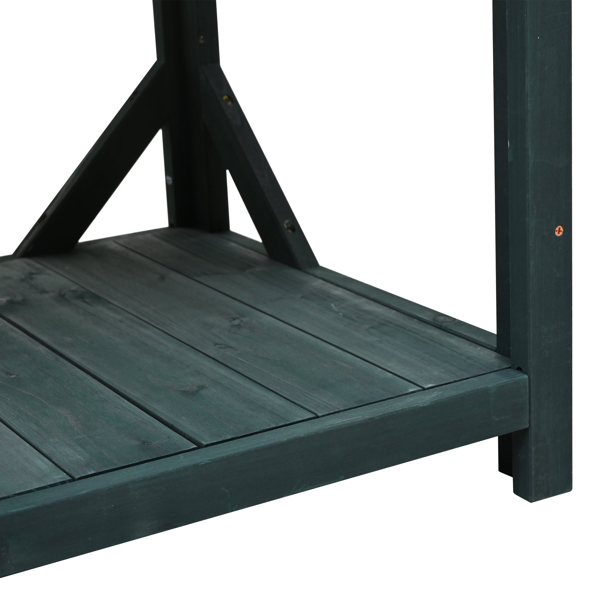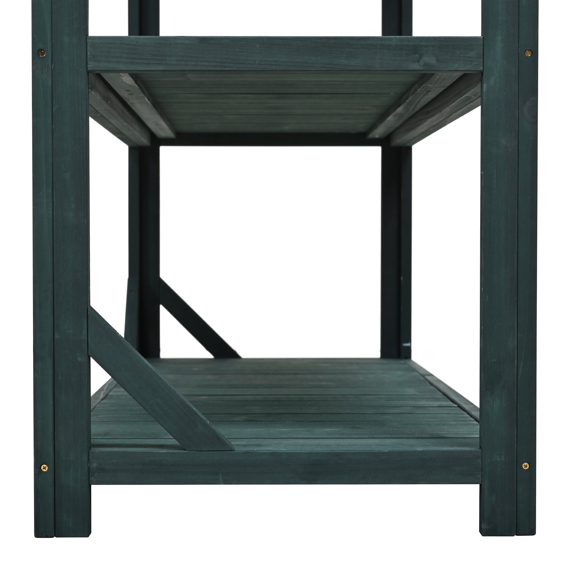 TOPMAX 65' Large Wooden Farmhouse Rustic Outdoor Potting Bench Table, Patio Workstation, Garden Potting Bench with 4 Storage Shelves and Side Hook, Forest Green N717P221495F-djyc