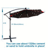 | Package Includes: | 1 X 24 LED Lighted Patio Umbrella;1 X Solar Panel;1X Cross umbrella base |