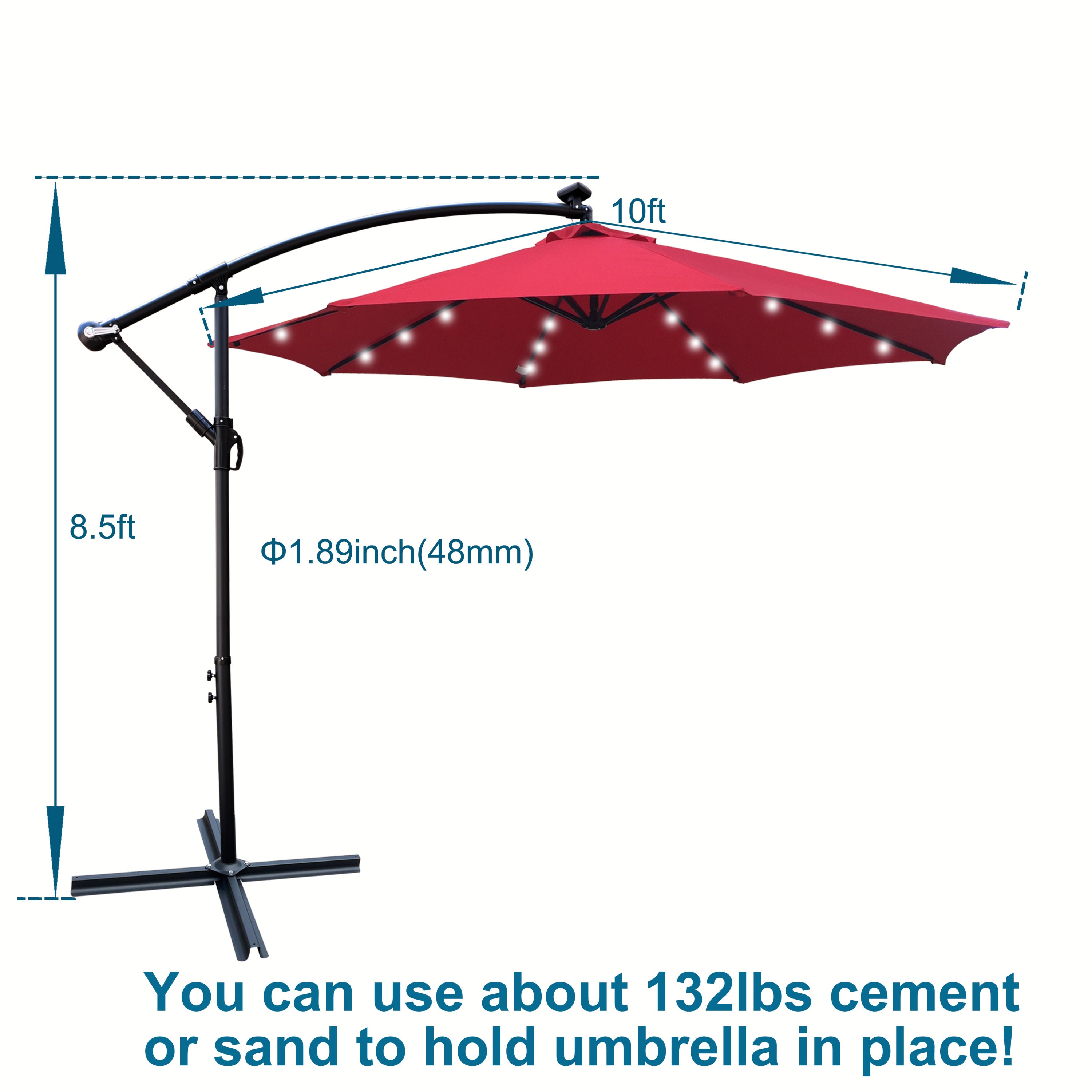 10 ft Outdoor Patio Umbrella Solar Powered LED Lighted 8 Ribs Umbrella with Crank and Cross Base for Garden Outside Deck Swimming Pool W65627950-djyc
