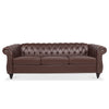 84.65' Dark Brown PU Rolled Arm Chesterfield Three Seater Sofa. W68035342-djyc