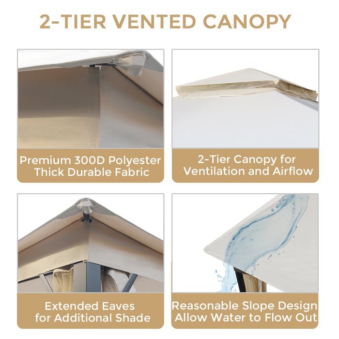 - 【SPACIOUS SPACE】:Outdoor canopy gazebo looks great in garden,backyards, terraces, lawns, courtyards and other outdoor spaces,It’s spacious enough to accommodate 10-12 people for parties and weddings; enjoy a relaxing time with your friends and family