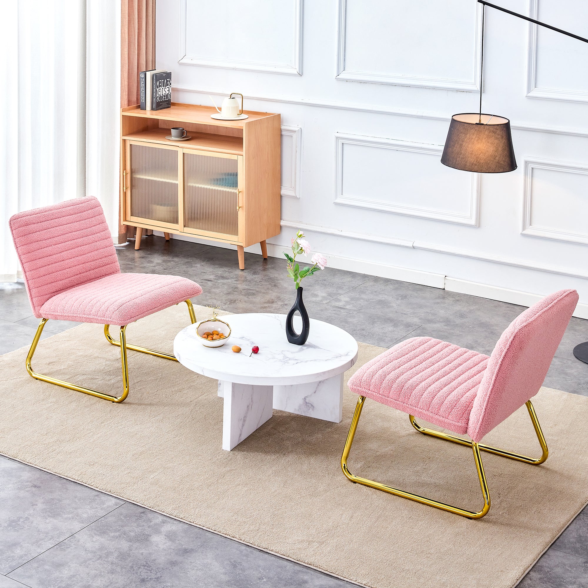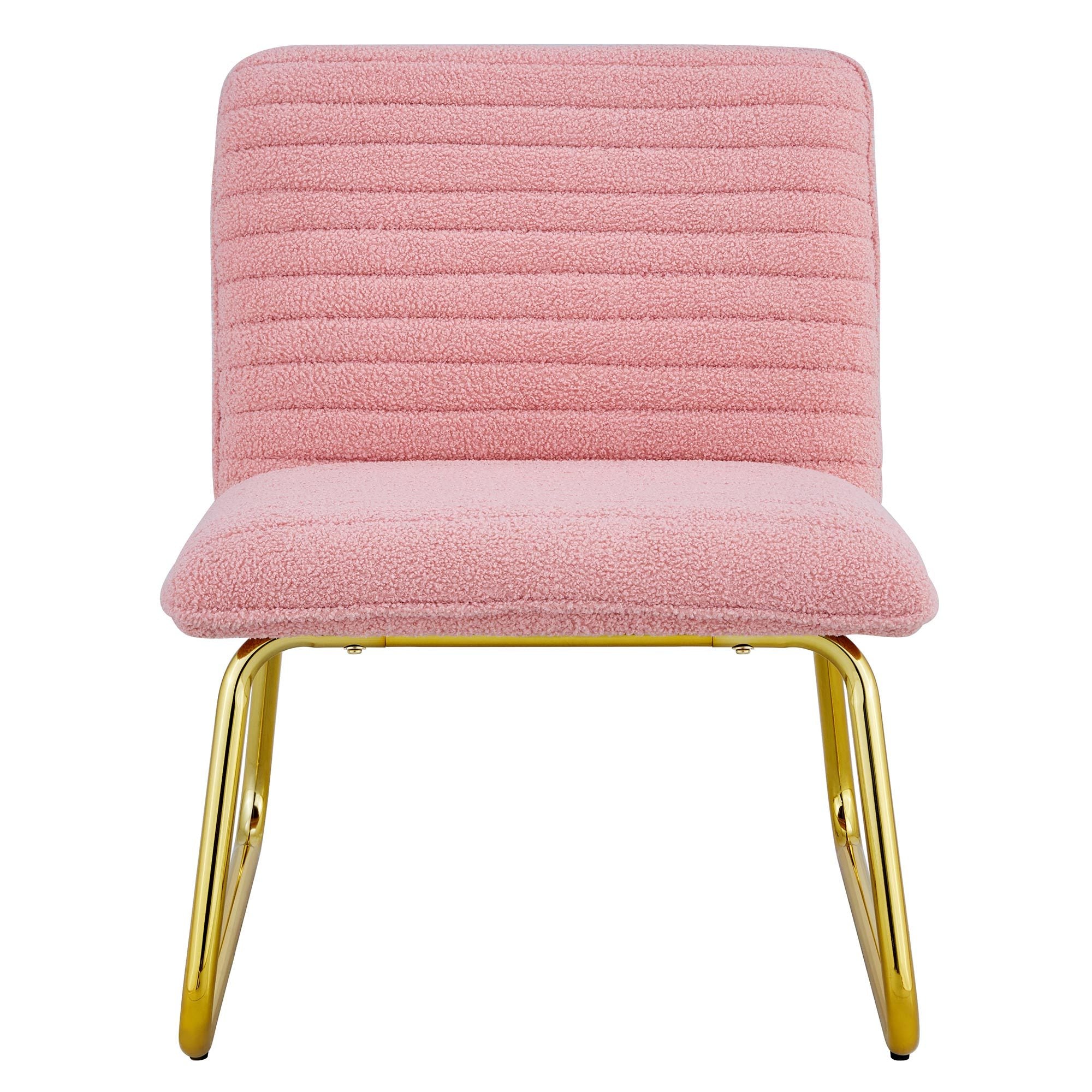 Modern minimalist pink plush fabric single person sofa chair with golden metal legs. Suitable for living room, bedroom, club, comfortable cushioned single person leisure sofa W1151121292-djyc