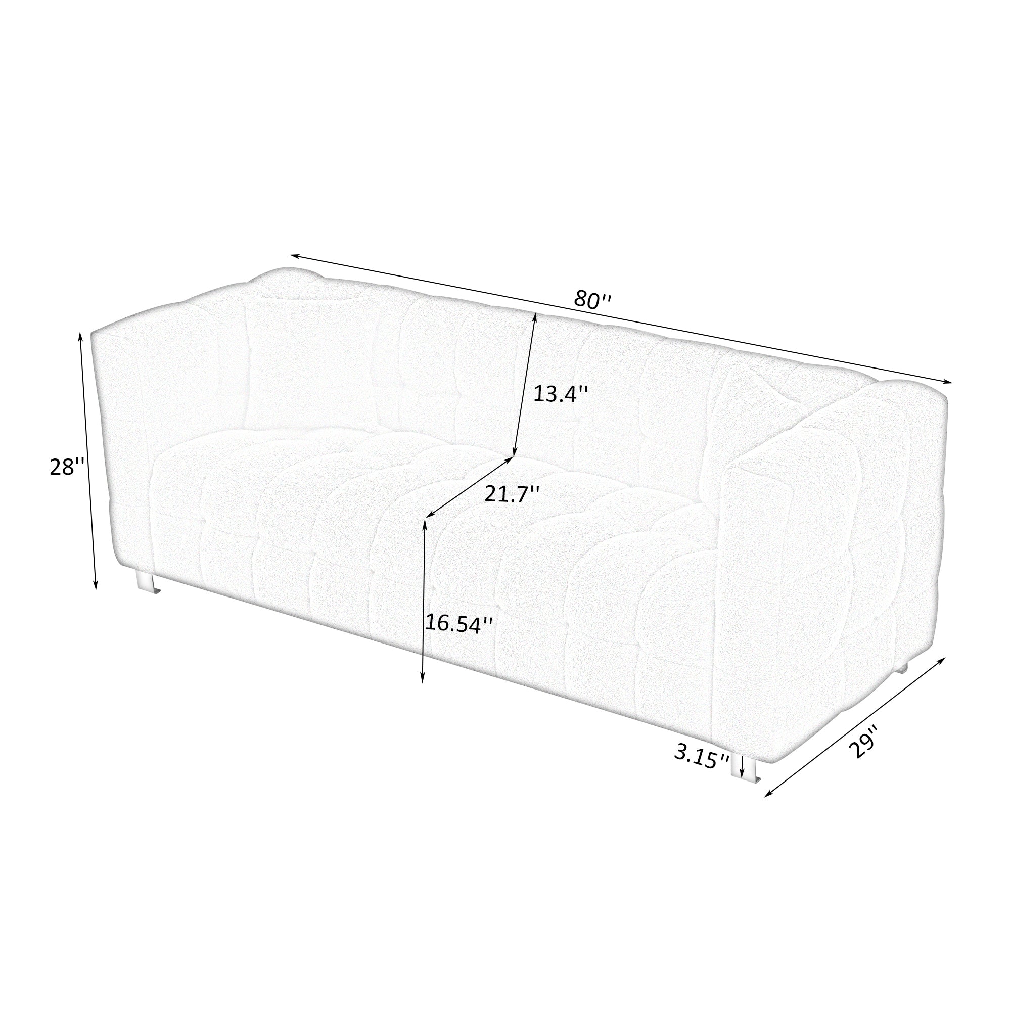 Sophisticated Comfort: Beige White Teddy Plush Sofa - 80 Inch, Perfect for Living Room or Bedroom, Includes Two Throw Pillows and Heavy-Duty Hardware Foot Support W1278141697-djyc