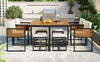 - Spacious Set: Includes an acacia wood dining table, 4 single chairs, and 4 ottomans Provides plenty of dining space for family and guests. Suitable for a variety of outdoor settings, it adds a chic and elegant dining atmosphere to your patio, garden, or backyard.