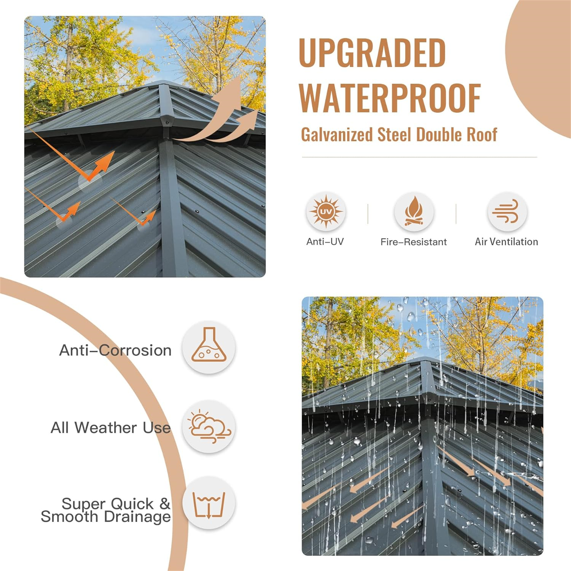 - Multiple Usage- This hardtop gazebo can provide an attractive and comfortable space for outdoor living, such as for entertaining guests or relaxing with family and friends. It can provide a dedicated space for you to enjoy outdoor dining. And can also serve as a workspace for outdoor projects or hobbies. It can be a great spot for painting, woodworking, or even yoga.