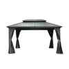 - Double Roof Design- The space between the two roof layers allows air to circulate, creating a ventilation system that helps keep the gazebo cool and comfortable even on hot summer days. Plus, the slope of the roof helps rain and snow to flow down and off the structure, reducing the risk of damage and ensuring a long-lasting, durable roof.