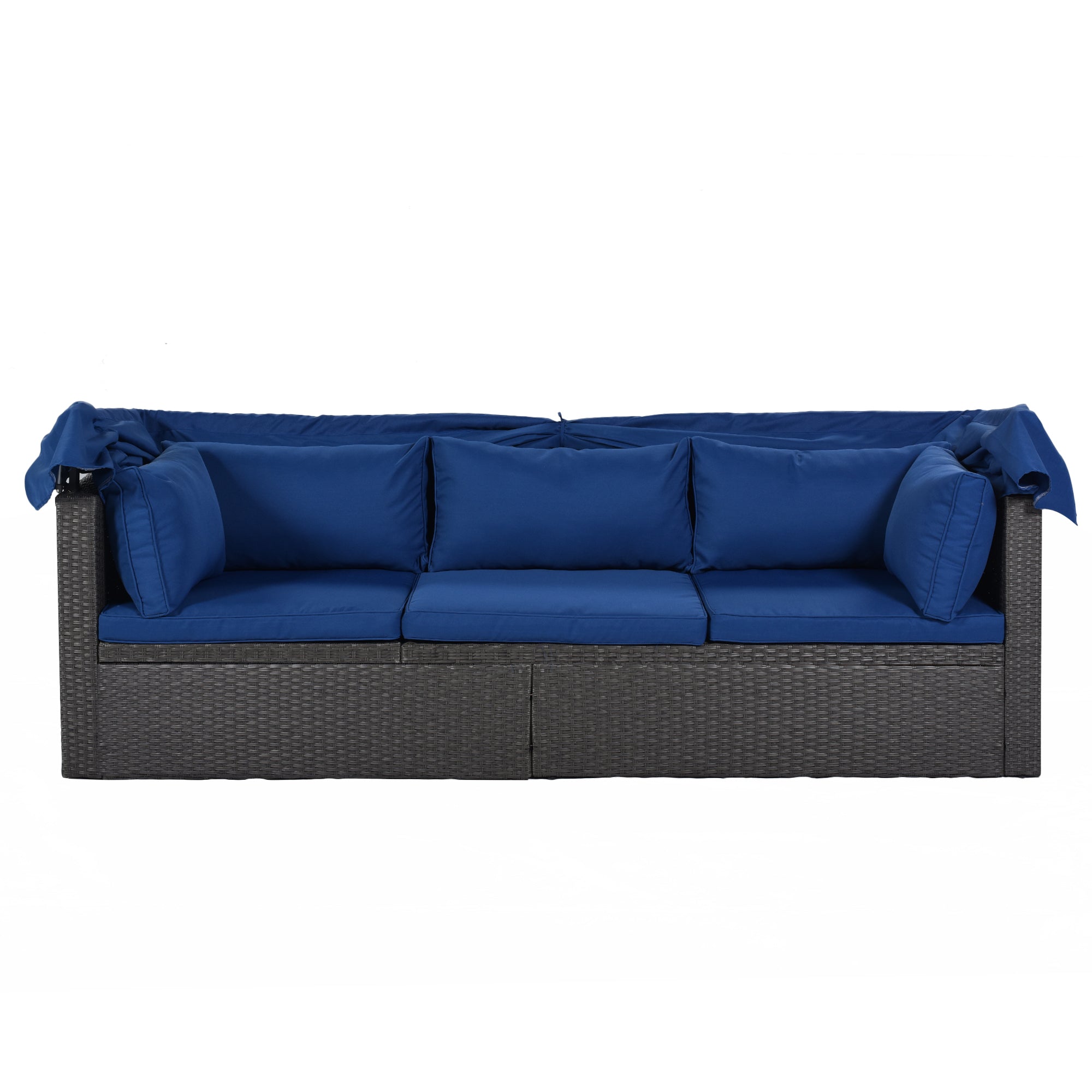 U_Style Outdoor Patio Rectangle Daybed with Retractable Canopy, Wicker Furniture Sectional Seating with Washable Cushions, Backyard, Porch(As same as WY000263AAE) WY000319AAV-djyc