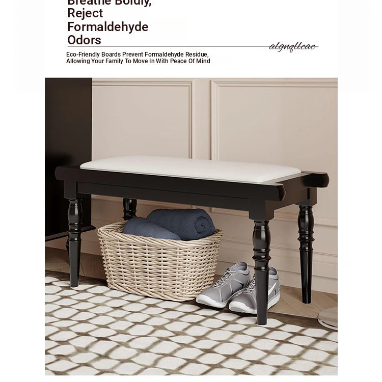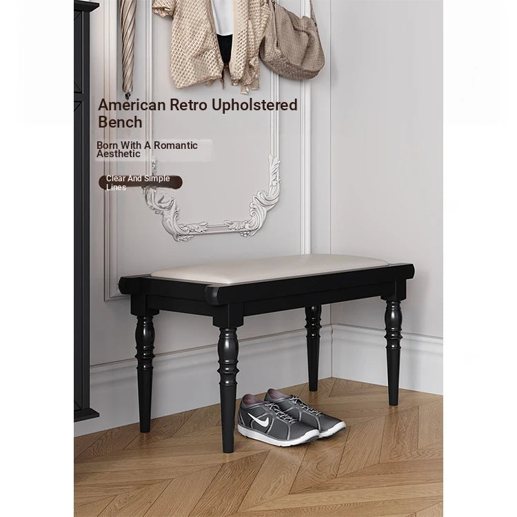Elegant PU Leather Upholstered Stool Bench with Stylish Black Legs - Perfect for Entryway, Living Room, or Bedroom Storage and Seating fcr-4832