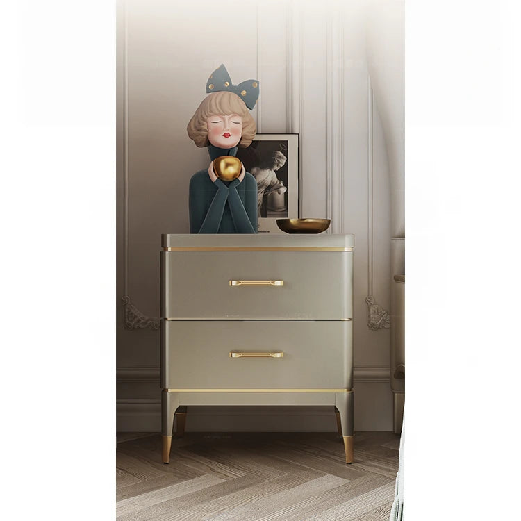| A Better Home Starts with BICROOM | **Elegant Design**: This sophisticated nightstand features a sleek, modern design with a soft finish that complements any bedroom decor. Its chic lines and gold accents enhance your space with a touch of luxury. **Durable Construction**: Crafted from solid wood, metal, and multi-layer board, this nightstand ensures long-lasting durability and structural integrity. Invest in quality that stands the test of time. **Convenient Storage**: With two spacious drawers, you can easily organize your bedside essentials. The smooth-gliding drawers provide hassle-free access, making it perfect for keeping your nighttime items close at hand. **Versatile Style**: Whether your decor is contemporary, minimalist, or traditional, this nightstand fits seamlessly into any aesthetic. Its neutral color palette adds versatility, making it an ideal choice for any bedroom. **Easy Assembly**: Enjoy quick and straightforward assembly with minimal tools required. Your new nightstand will be ready to enhance your bedroom in no time, providing functionality and style effortlessly. **Perfect Size**: Measuring just the right height, this nightstand fits perfectly alongside your bed, offering a convenient surface for your lamp, clock, and favorite book without overcrowding your space. **Eco-friendly Materials**: Made from sustainably sourced materials, this nightstand aligns with eco-conscious choices, allowing you to enhance your home while being kind to the planet. |