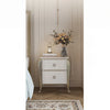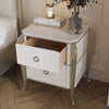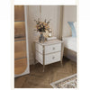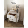 | A Better Home Starts with BICROOM | **Elegant Design**: This nightstand blends contemporary elegance with classic charm. Its solid wood and reflective metal accents create a timeless piece that enhances any bedroom decor. **Ample Storage**: Featuring two spacious drawers, this nightstand offers generous storage for your nighttime essentials, keeping your bedside organized and clutter-free. **Premium Materials**: Crafted from high-quality solid wood and multi-layer board, this nightstand ensures durability and long-lasting beauty, making it a perfect investment for your home. **Versatile Finish**: The chic white finish with sophisticated gold accents seamlessly complements a variety of styles, from modern to traditional, making it a versatile addition to any bedroom. **Easy Maintenance**: Designed for practicality, this nightstand's smooth surface wipes clean easily, ensuring it retains its stunning appearance with minimal effort. **Perfect Size**: With its compact dimensions, this nightstand fits effortlessly in smaller spaces while still providing ample functionality, making it an ideal choice for apartments or cozy bedrooms. |