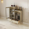 | A Better Home Starts with BICROOM | **Elegant Wine Cabinet**: Enhance your home decor with our sophisticated wine cabinet, crafted from solid wood and multi-layer board. Its sleek design combined with glass doors allows you to showcase your favorite wines while keeping them protected. **Durable & Stylish**: This wine cabinet features a blend of metal and polyester accents that not only add elegance but also ensure durability. Perfect for modern and classic interiors alike, it stands out as both a functional piece and a stylish statement. **Perfect Storage Solution**: With ample space to store bottles and accessories, our wine cabinet is designed for wine enthusiasts. Its thoughtful layout ensures easy access to your collection while adding a touch of luxury to your living space. **Versatile Design**: Whether used in your dining room, living room, or kitchen, this wine cabinet seamlessly integrates into any setting. The combination of solid wood and glass provides a timeless look that complements any home style. **Functional Charm**: Featuring gold handles and slender legs, this wine cabinet not only offers practicality but also an aesthetic charm. Its glass-fronted design invites exploration, making it the ideal piece for entertaining guests or simply enjoying a quiet evening at home. **Easy Organization**: Say goodbye to cluttered countertops with our meticulously designed wine cabinet. The clear compartments ensure your wines are neatly organized and showcase them beautifully, making it easier to find the perfect bottle for any occasion. |