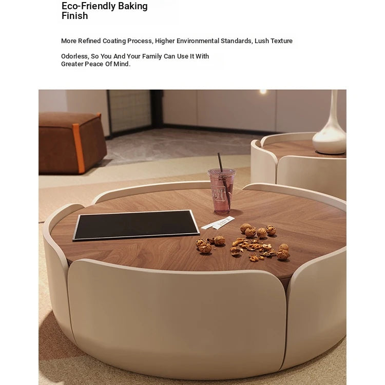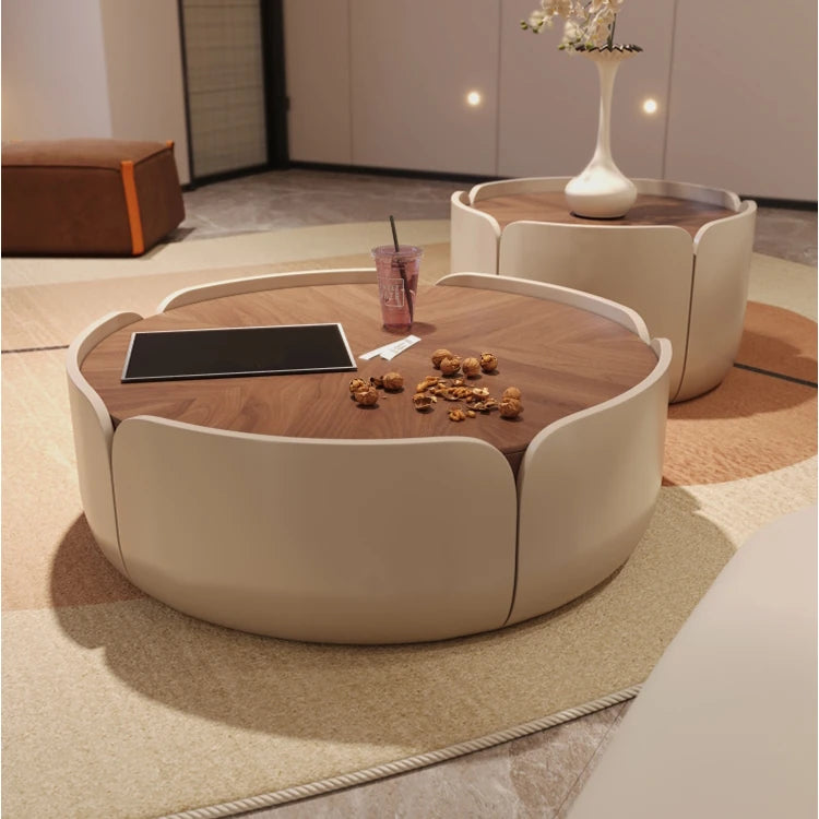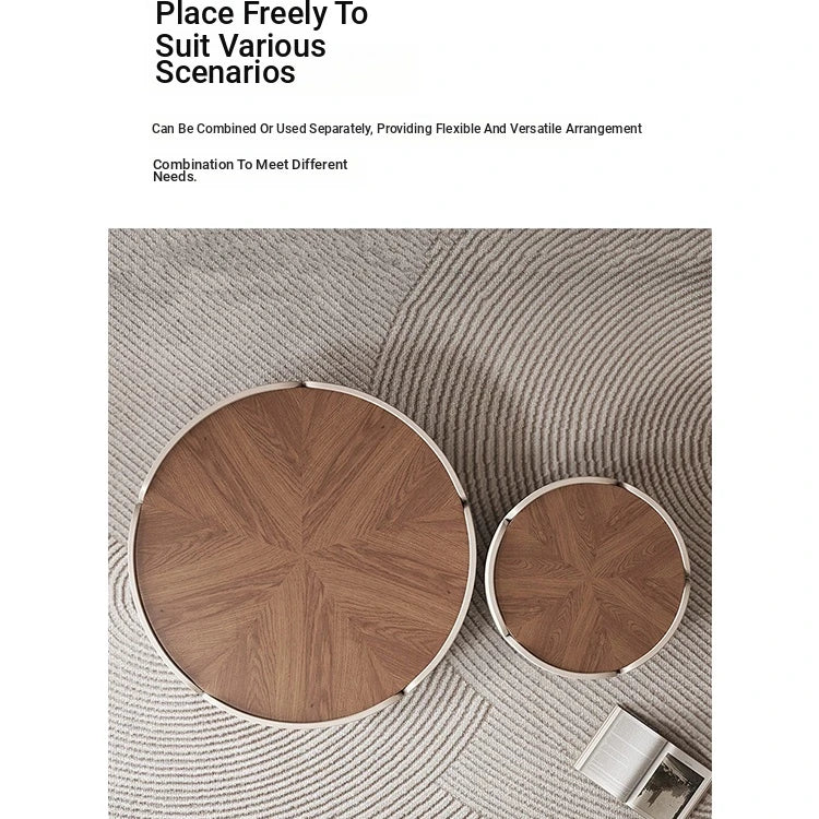 Modern Round Coffee Table with Walnut Top and Stylish Beige Base – Perfect for Living Room Décor fme-3127