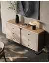 | A Better Home Starts with BICROOM | **Contemporary Elegance**: Elevate your living space with our stylish cabinet crafted from premium PU leather, complemented by the warmth of ash and black walnut wood. Its minimalist design effortlessly enhances any interior, making it the perfect addition to modern homes. **Durable and Chic Storage Solution**: Experience a blend of functionality and fashion with this cabinet, featuring sturdy metal accents. It offers plenty of storage while maintaining a sleek and sophisticated aesthetic that suits both contemporary and traditional environments. **Sustainable Craftsmanship**: Made from eco-friendly materials, this cabinet showcases responsibly sourced wood and luxurious PU leather. Enjoy peace of mind knowing your furniture choice is both stylish and considerate of the environment. **Versatile Design for Any Room**: Whether in your living room, bedroom, or hallway, this versatile cabinet serves as a stunning focal point. Its multi-functional drawers provide ample space for organization, helping you maintain a tidy and stylish home. **Easy Maintenance**: With its smooth PU leather surfaces and durable wood finish, cleaning and maintaining this cabinet is a breeze. Spend less time worrying about upkeep and more time enjoying your beautifully organized space. **Functional Art Piece**: This cabinet is not just furniture; it’s a work of art that transforms your living space. The unique combination of textures and colors creates a captivating visual appeal, making it an eye-catching addition to your decor. |