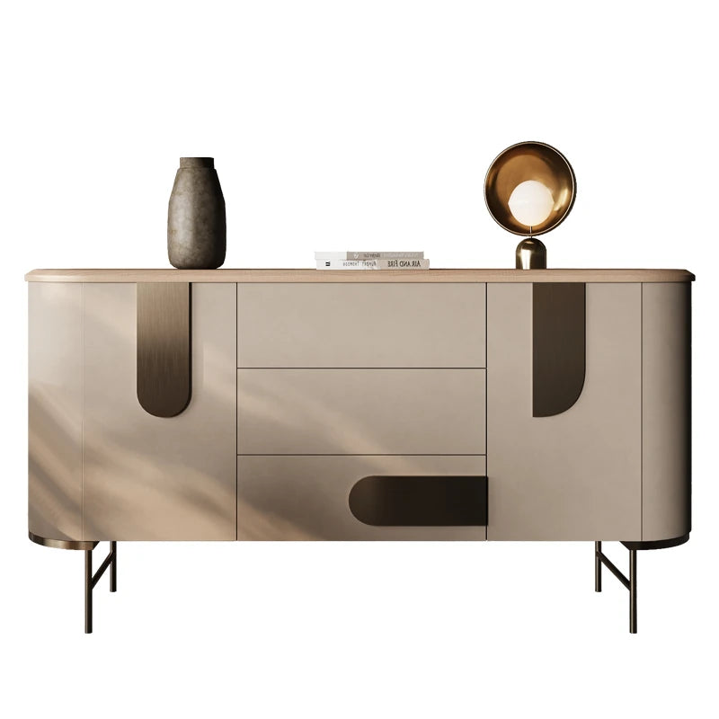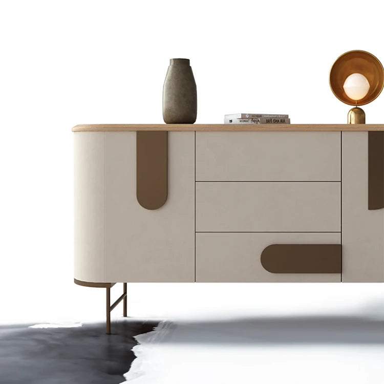 | A Better Home Starts with BICROOM | **Stylish Elegance**: Elevate your living space with our modern cabinet, crafted from premium PU leather, metal, and exquisite ash wood. Its sophisticated design complements any decor while providing ample storage. **Durable Quality**: This cabinet combines a chic PU leather facade and sturdy metal framework, ensuring longevity and ease of maintenance. Experience the perfect blend of style and functionality in your home. **Versatile Storage**: With multiple spacious drawers, this cabinet offers the perfect solution for organizing your essentials. Keep your space tidy while showcasing your favorite decor items on its sleek surface. **Contemporary Design**: Transform your interiors with this eye-catching cabinet. Its unique contours and warm wooden accents make it a standout piece for any room, from the living room to the hallway. **Eco-Friendly Materials**: Made with responsibly sourced ash wood and sustainable materials, this cabinet is not only a stylish addition to your home but also an environmentally conscious choice. **Easy Assembly**: Designed for effortless setup, this cabinet comes with clear instructions and all necessary hardware, ensuring you can enjoy your new furniture without hassle. |