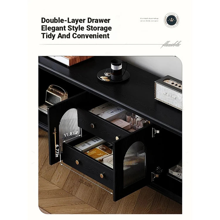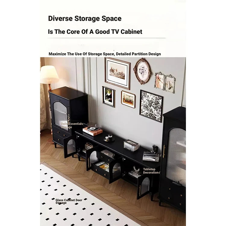 Elegant Black Tempered Glass TV Cabinet - Modern Living Room Furniture with Storage Solutions fvp-4588