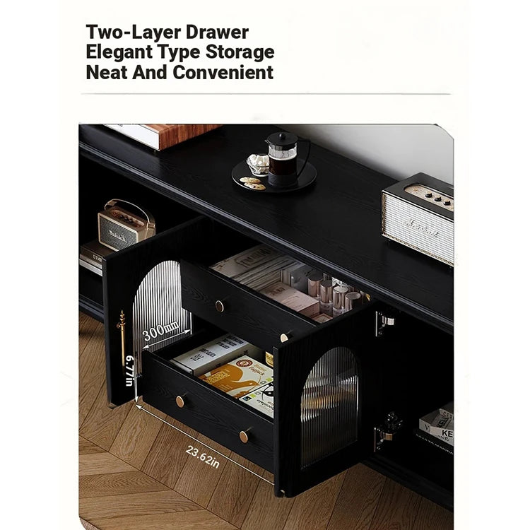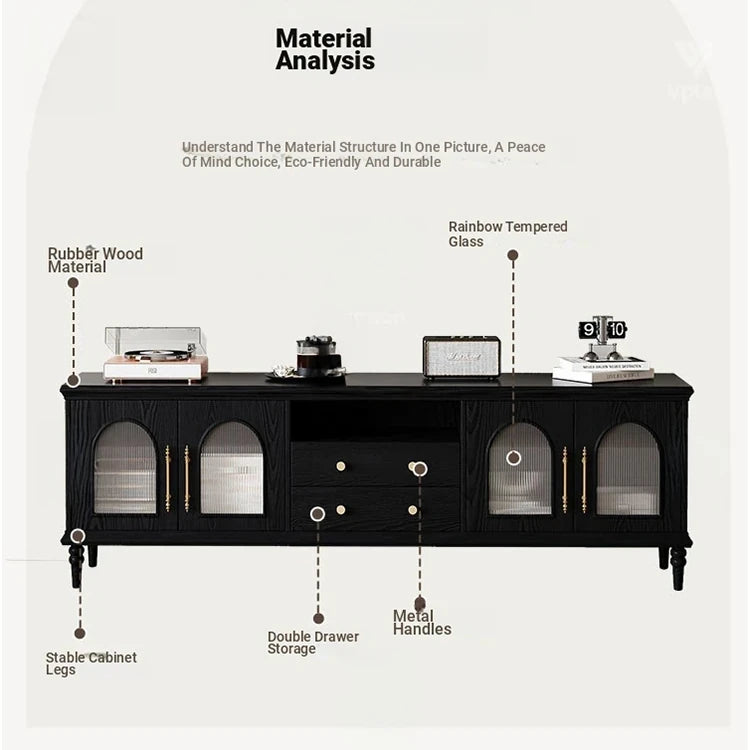 | A Better Home Starts with BICROOM | **Elegant Design**: Elevate your living space with our stylish TV Cabinet crafted from premium rubber wood, plywood, and tempered glass. The sleek black finish adds a touch of sophistication to any décor. **Functional Storage**: With multiple drawers and open compartments, this TV Cabinet offers ample storage for your media devices and decor items, keeping your space organized and clutter-free. **Sturdy Construction**: Built with high-quality materials like metal and sturdy plywood, this cabinet ensures lasting durability. Enjoy peace of mind knowing your entertainment center is designed to withstand daily use. **Versatile Style**: Whether you're aiming for a modern or classic look, this TV Cabinet fits seamlessly into any interior design. Its timeless aesthetic makes it a perfect addition to your home. **Easy Assembly**: Enjoy hassle-free setup with our user-friendly instructions. Transform your living room in no time and create an inviting atmosphere to entertain family and friends. **Thoughtful Dimensions**: Designed to fit perfectly in both large and small spaces, the sleek profile of this TV Cabinet enhances your living area without overwhelming it, making it an ideal choice for all homes. |