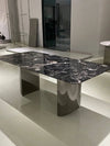 Elegant Marble and Stainless Steel Dining Table - Modern Luxury for Your Home fyeyj-5217