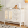 | A Better Home Starts with BICROOM | **Crafted Elegance**: This stunning Sideboard is meticulously made from solid cherry wood, bringing an unparalleled touch of natural beauty to your home decor. Its rich finish enhances the warmth of any room while providing functional storage. **Stylish Storage Solution**: Featuring a combination of sleek stainless steel accents and tempered glass, this Sideboard offers a modern twist on classic design. With three spacious drawers and a glass-paneled cabinet, it keeps your essentials organized while showcasing your favorite decor. **Timeless Design**: The perfect blend of classic and contemporary, this Sideboard showcases beautifully turned legs and elegant detailing. Its multi-layer board construction ensures durability without sacrificing style, making it an ideal addition to your dining or living room. **Versatile Functionality**: Whether used as a buffet in your dining area or an entertainment center in your living space, this Sideboard provides ample storage and versatility. Its sophisticated look makes it a statement piece that complements various interior styles. **Easy Maintenance**: Designed for everyday use, this Sideboard's tempered glass surfaces and high-quality finishes allow for easy cleaning and upkeep, ensuring it remains a cherished part of your home for years to come. **Impressive Display**: The glass doors elegantly showcase your favorite collectibles, while the solid wood construction promises stability and longevity. Elevate your interior with this exquisite piece that balances beauty and practicality. |
