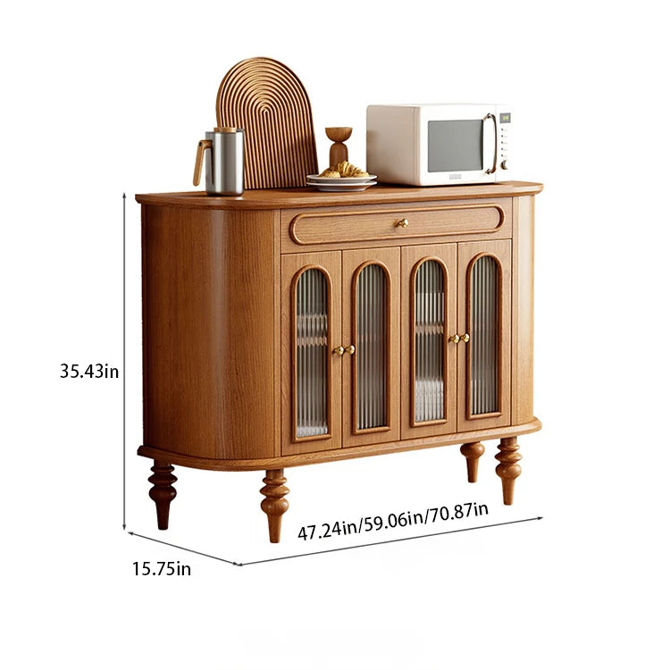 | A Better Home Starts with BICROOM | **Stylish Storage Solution**: Elevate your home decor with our exquisite sideboard, crafted from solid wood and multi-layer board. Its elegant design features a warm finish that seamlessly complements any interior. **Versatile Functionality**: This sophisticated sideboard not only offers ample storage space but also serves as a beautiful display area. The glass doors allow you to showcase your favorite items while keeping them protected. **Durable and Timeless**: Built from quality materials, including solid wood, metal, and glass, this sideboard assures durability and longevity, making it a wise investment for your home furnishings. **Chic and Contemporary Design**: Featuring a unique curved silhouette and decorative arches, this sideboard adds a touch of modern elegance to any room. Its stylish design makes it perfect for living rooms, dining areas, or entryways. **Easy Maintenance**: The combination of solid wood and glass makes this sideboard not only stunning but also easy to clean. Simply wipe down surfaces for a pristine appearance that enhances your home's aesthetic. **Perfect for Any Occasion**: Whether you’re hosting a dinner party or organizing your space, this sideboard is versatile enough to fit all your needs, making it an essential piece for both everyday use and special occasions. |
