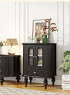 | A Better Home Starts with BICROOM | **Elegant Design**: This cabinet, crafted from rich black walnut wood, features a sophisticated design that effortlessly enhances your home decor. Its timeless appeal makes it a perfect addition to any room. **Durable Construction**: Constructed with multi-layer board and reinforced metal elements, this cabinet ensures lasting durability and stability, making it a dependable choice for your storage needs. **Versatile Storage**: With its glass doors and ample storage space, this cabinet is ideal for displaying cherished items while keeping them protected. Store books, decorative pieces, or dinnerware in style. **Chic Modern Touch**: The combination of black walnut wood and exquisite glass detailing delivers a chic, modern aesthetic that complements both contemporary and traditional interiors. **Functional and Stylish**: The lower drawer adds functionality, perfect for keeping items out of sight while maintaining the cabinet's captivating design. This piece is as practical as it is stylish. **Easy to Style**: Whether placed in the living room, dining area, or hallway, this cabinet's versatile look fits seamlessly into any setting, allowing you to showcase your personal style with ease. |