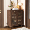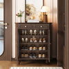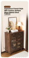 Elegant Black Walnut Shoe Cabinet with Glass Doors - Stylish Multi-Layer Storage Solution for Your Entryway halmh-5324