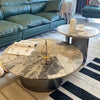 | A Better Home Starts with BICROOM | **Elevate Your Living Space**: This sleek coffee table, crafted from durable sintered stone and stainless steel, combines modern aesthetics with functionality, making it the perfect centerpiece for your living room. **Durable & Stylish**: Featuring a multi-layer board construction, our coffee table is designed to withstand daily use while offering a sophisticated look that complements any décor style, from contemporary to minimalist. **Easy Maintenance**: The sintered stone surface is not only stunning but also resistant to scratches and stains, ensuring your coffee table remains beautiful and easy to clean for years to come. **Versatile Design**: With its round shape and elegant finish, this coffee table is perfect for social gatherings or quiet evenings at home, seamlessly fitting into various setups and enhancing your overall décor. **Sustainable Choice**: Made from eco-friendly materials, this coffee table is not only a stylish addition to your home but also a responsible purchase for the environmentally conscious consumer. **Compact and Functional**: Ideal for smaller spaces, this coffee table offers ample surface area without overpowering your living room, providing the perfect spot for drinks, books, and decorative items. |