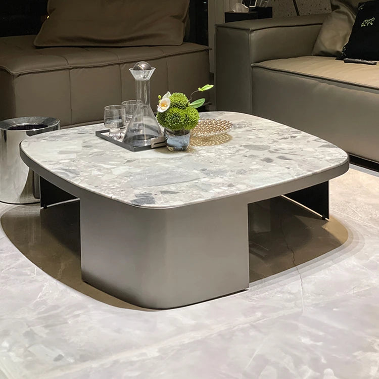 Stylish Sintered Stone Coffee Table with Modern Stainless Steel Base - Perfect Centerpiece for Living Room Decor hbso-3015