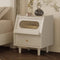 Stylish White Rubber Wood Bedside Cupboard with Glass & Ash Wood Accents hglna-1457