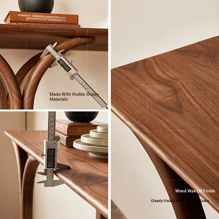| A Better Home Starts with BICROOM | **Crafted from Solid North American Black Walnut Wood**: Elevate your space with our beautifully designed table made from 100% authentic black walnut wood, ensuring durability and timeless elegance without any veneers or fakes. **Sleek and Modern Design**: This table features a contemporary silhouette that complements a variety of interior styles, making it a perfect addition to your entryway, living room, or office. **Eco-Friendly and Sustainable Choice**: Each table is handcrafted from responsibly sourced black walnut, promoting sustainable practices while offering a unique grain pattern that enhances its natural beauty. **Versatile Functionality**: Use it as a console table, display your favorite décor, or set up a stylish entryway space. Its robust construction supports your lifestyle needs while offering aesthetic appeal. **Easy Maintenance and Longevity**: The natural finish of black walnut wood not only brings warmth to your home but also requires minimal upkeep. Wipe clean with a soft cloth for lasting beauty. **An Investment in Quality**: With no secondary materials, this exquisite piece not only adds value to your home décor but also serves as a conversation starter and focal point in any room. |