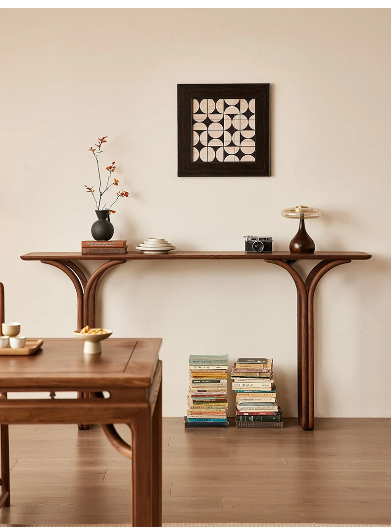 Elegant Solid Black Walnut Console Table – Modern Minimalist Design for Stylish Home Décor hjy-5008