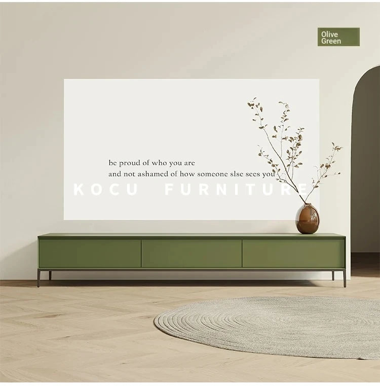Modern Minimalist Green TV Cabinet - Stylish Density Board Entertainment Center with Storage Solutions hko-4609