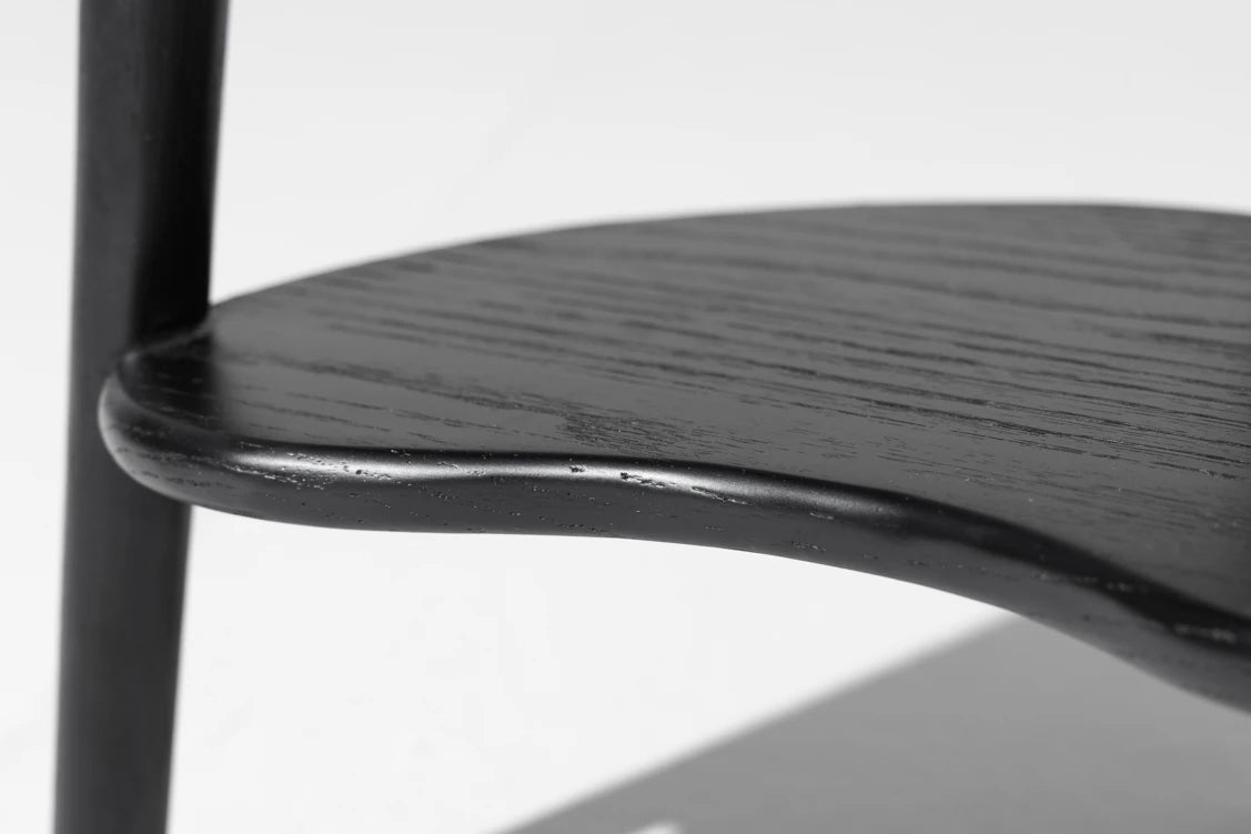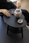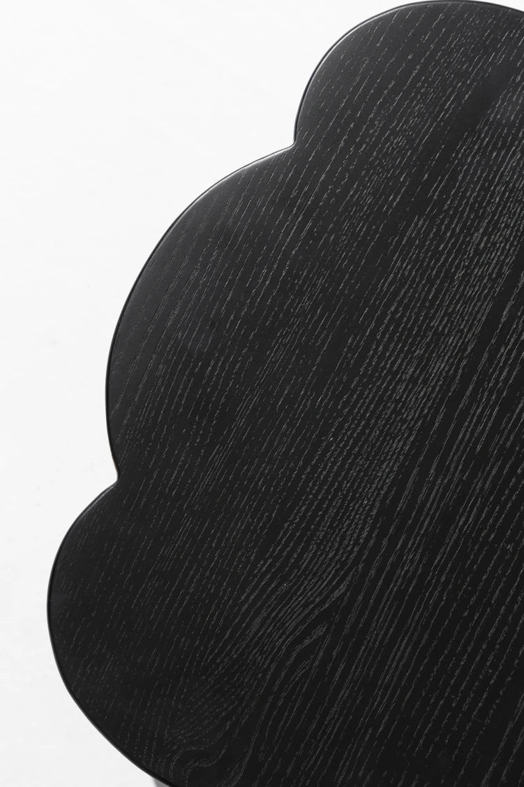 Chic Black Ash Wood Side Table with Unique Cloud Design and Lower Shelf hrn-5253
