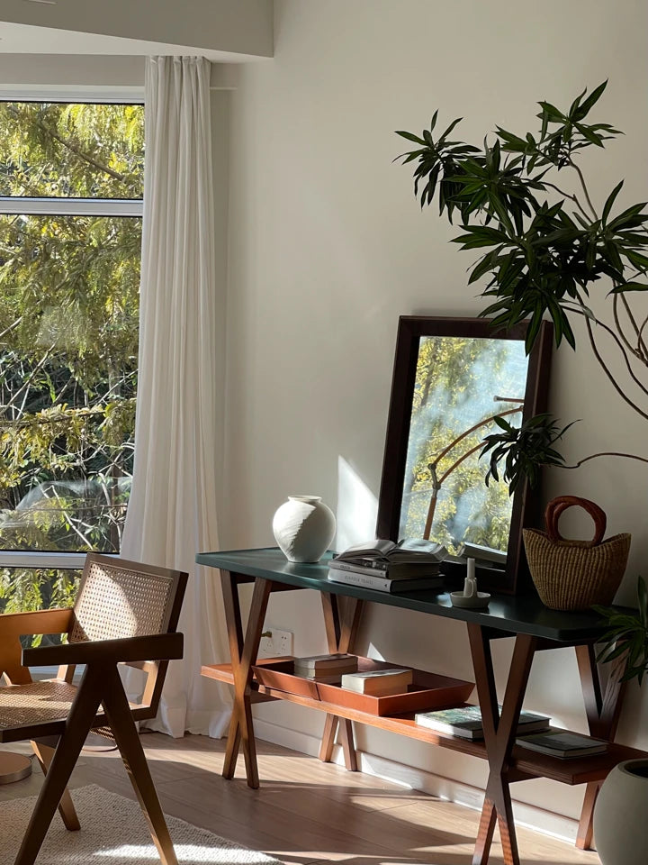 Product Code hrn-5260 Product Category Table Material Ash wood,Multi-layer board,Synthetic leather Color Brown/Green A Better Home Starts with BICROOM **Stylish Ash Wood Console Table**: Enhance your living space with our...