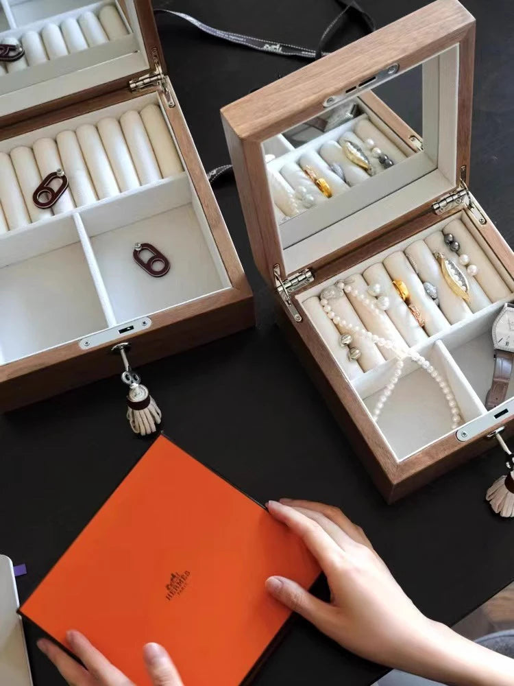 Stylish Ash Wood Console Table with Multi-layer Board and Synthetic Leather Accents hrn-5260