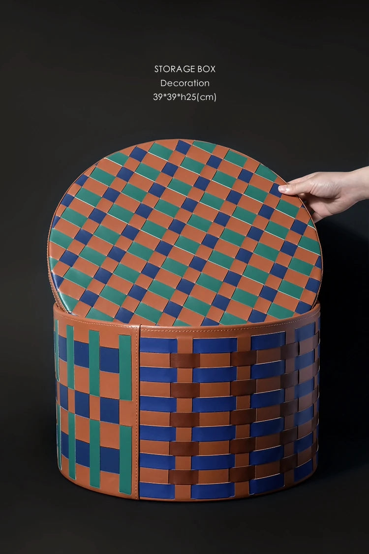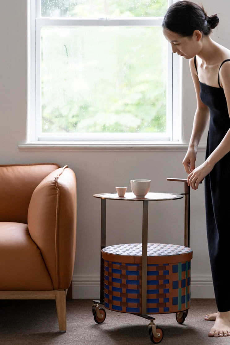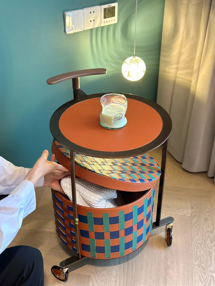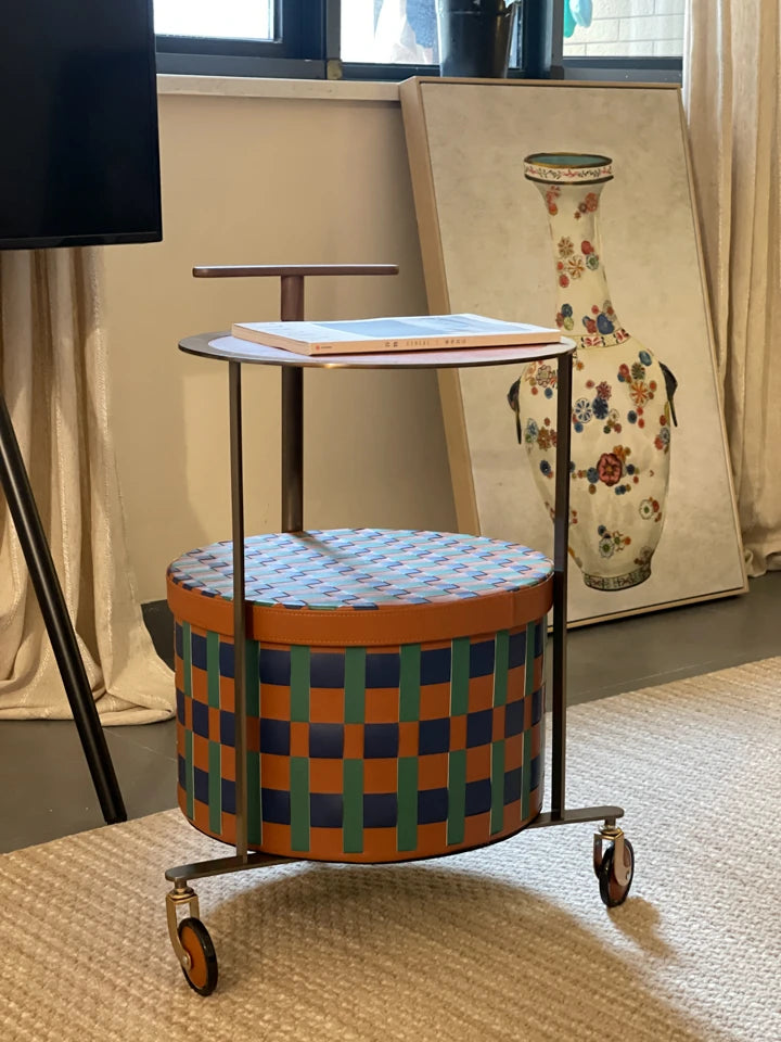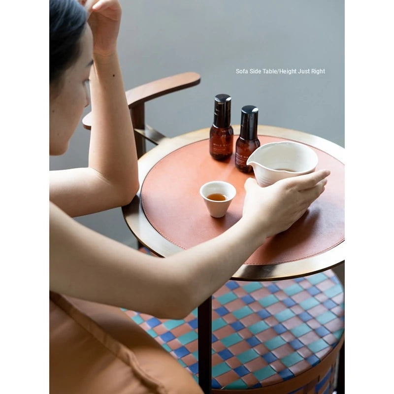 Stylish PU Leather Side Table with Stainless Steel Accents and Black Walnut Wood Base – Modern Decorative Accent for Living Room and Bedroom hrn-5267
