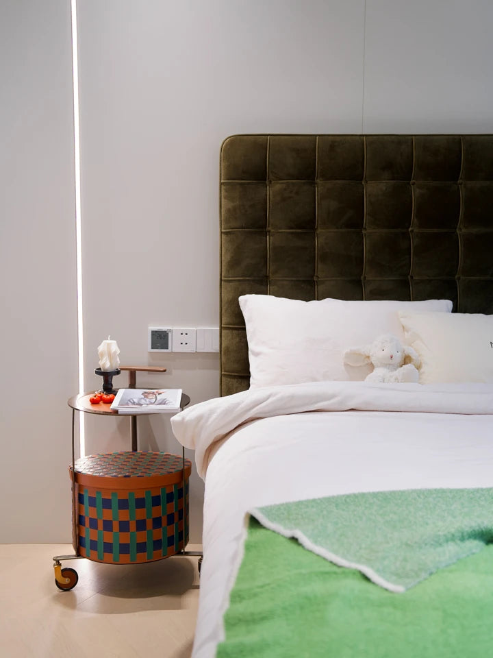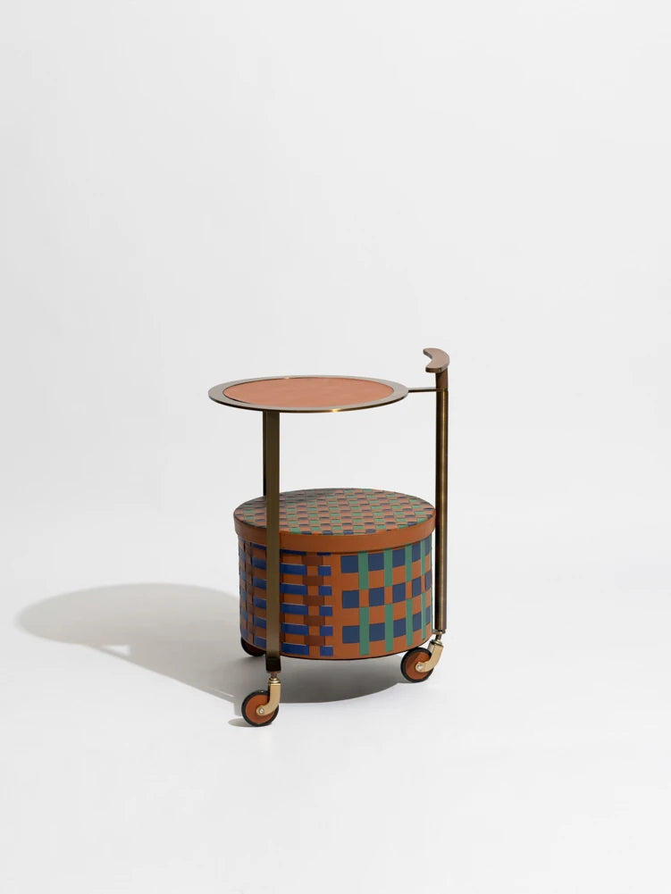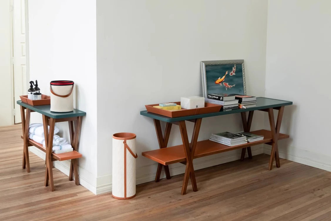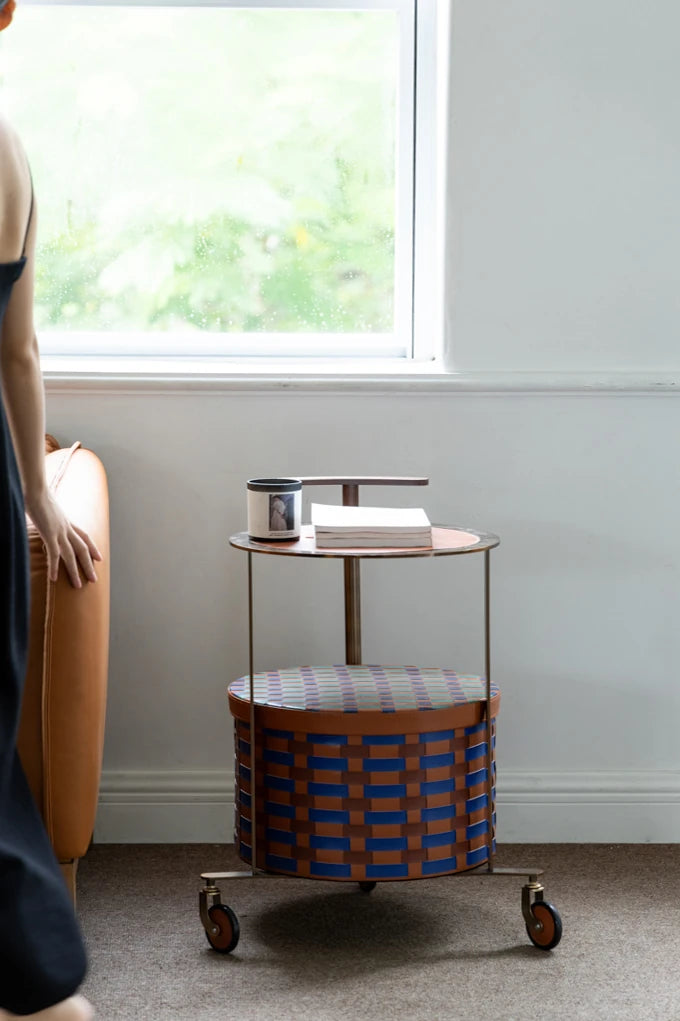 Stylish PU Leather Side Table with Stainless Steel Accents and Black Walnut Wood Base – Modern Decorative Accent for Living Room and Bedroom hrn-5267