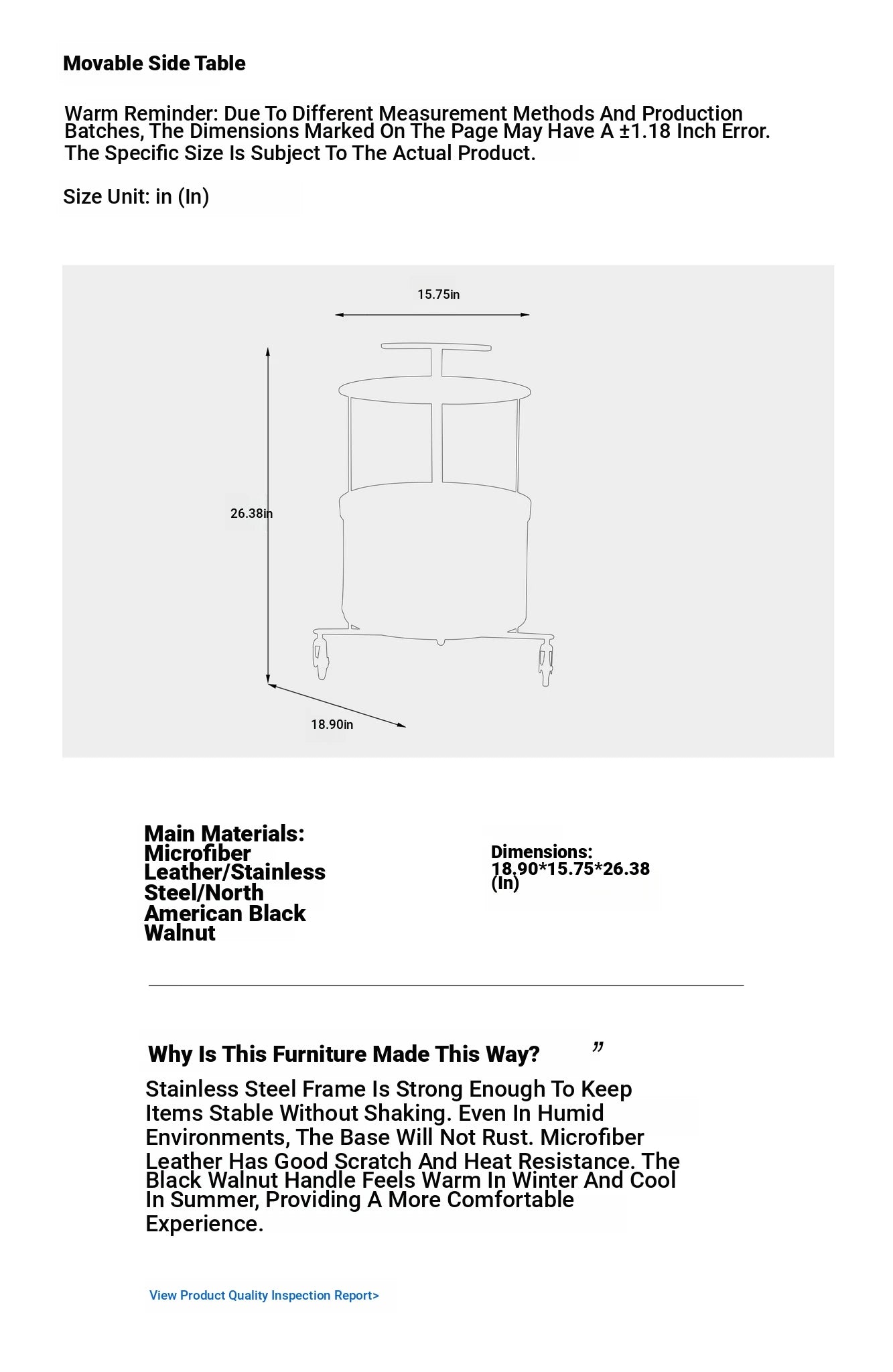 Product Code hrn-5267 Product Category Side Table Material PU Leather,Stainless,Black walnut wood Color Brown A Better Home Starts with BICROOM **Elegant Side Table**: Elevate your living space with this stylish...