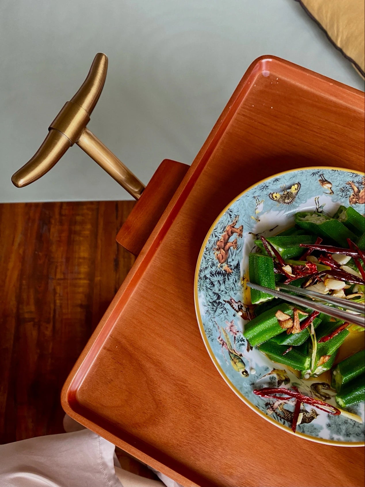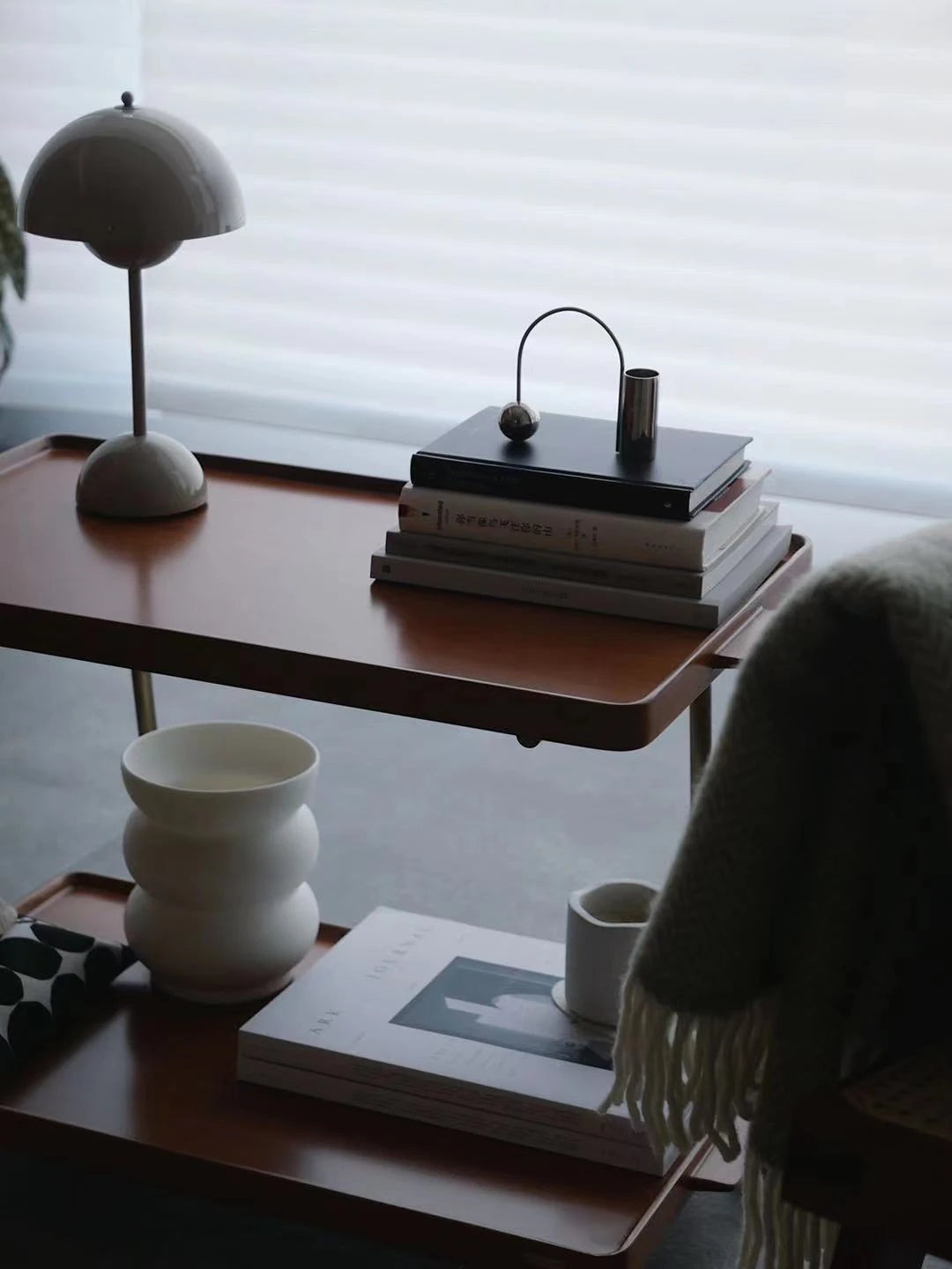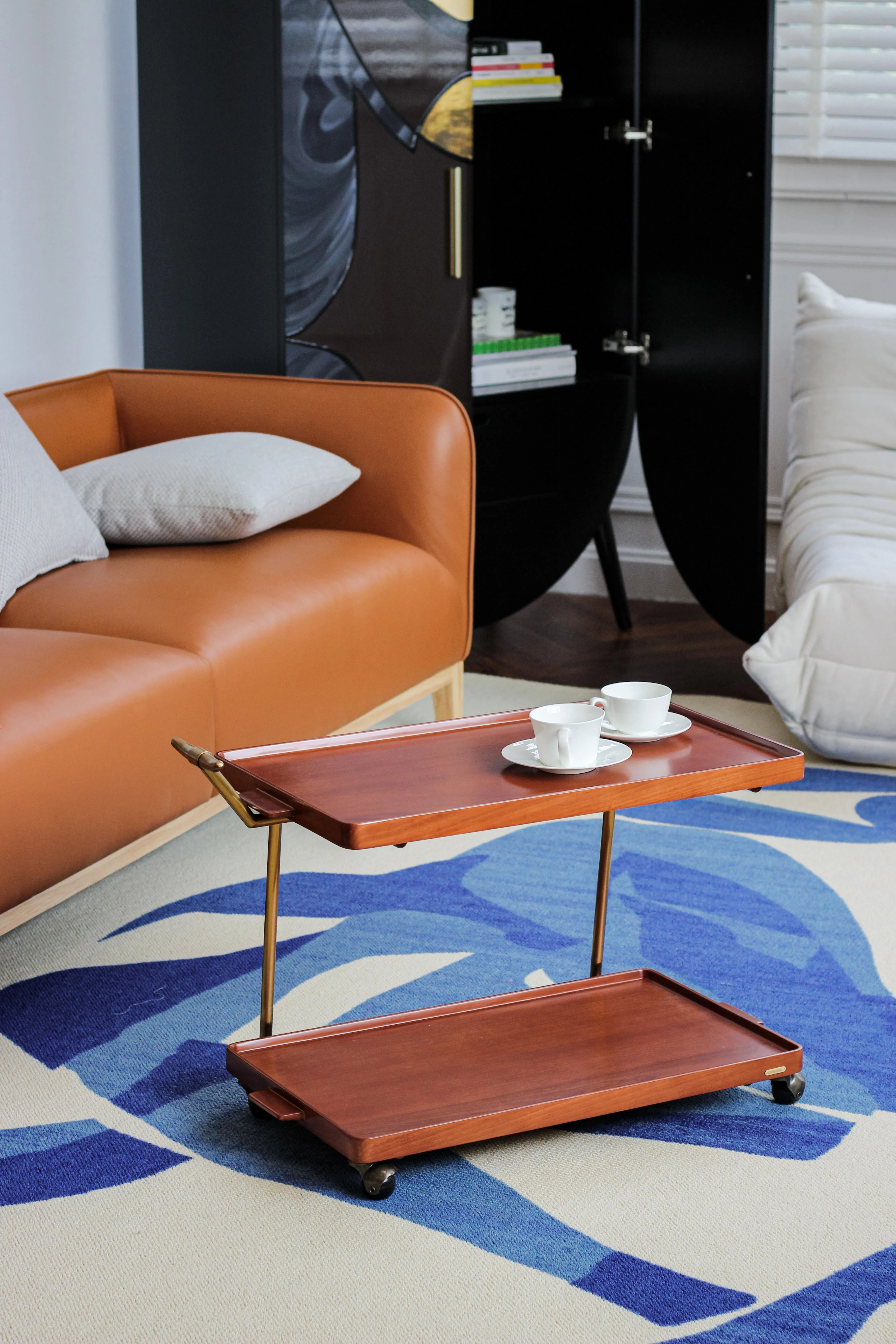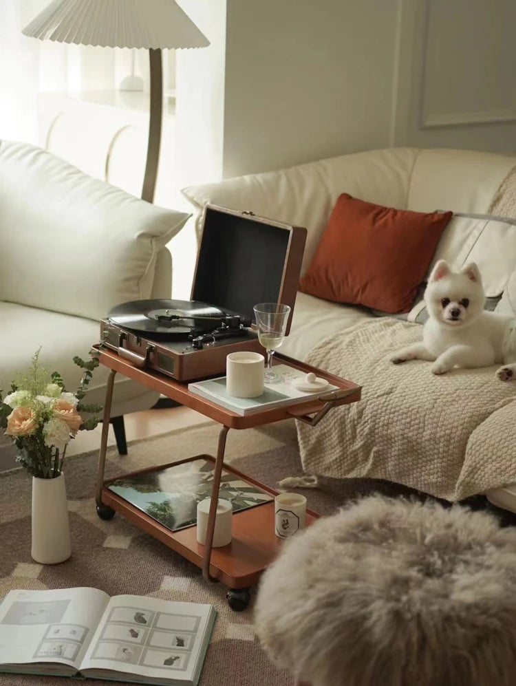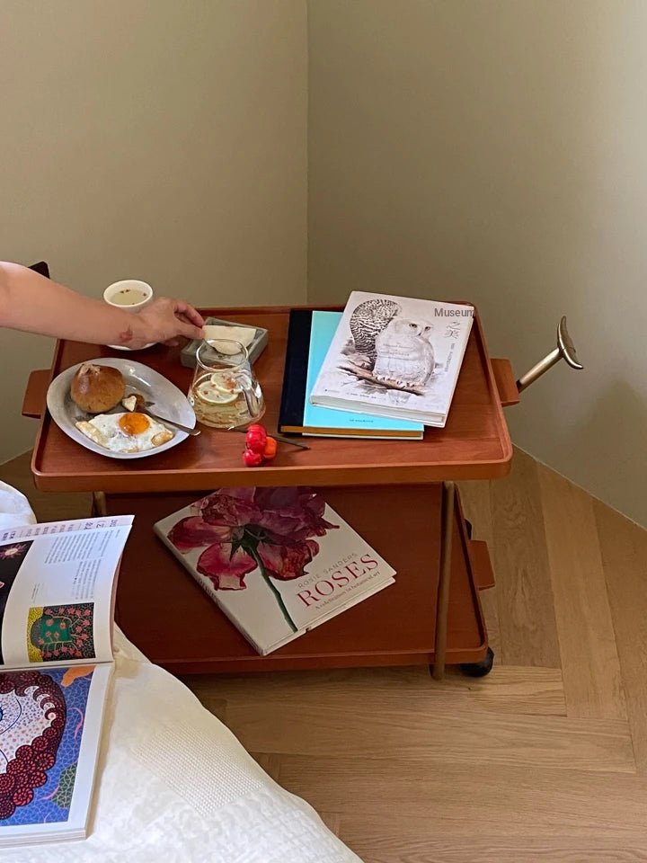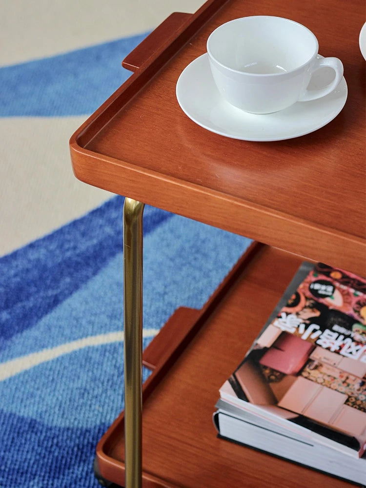 Elegant Metal and Oak Serving Cart with Copper Accents - Perfect for Entertaining hrn-5272