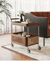 | A Better Home Starts with BICROOM | **Elevate Your Entertaining**: This sophisticated cart features a stunning solid wood top and elegant metal frame, making it the perfect centerpiece for any gathering. Serve drinks or appetizers in style while impressing your guests. **Versatile Design**: Crafted from solid wood and accented with durable resin and stainless steel, this cart seamlessly blends with modern or traditional decor. Use it in your dining room, kitchen, or living area for added functionality and aesthetic appeal. **Convenient Storage Solutions**: With a spacious top tray and a lower rattan storage basket, this cart offers ample space for your barware, dishes, or decor items. Keep everything organized and within reach, ensuring your space remains clutter-free. **Smooth Mobility**: Equipped with sturdy wheels, this cart glides effortlessly from room to room. Whether you're hosting a party or simply moving items around, enjoy easy transport with a stylish flair. **Robust Construction**: Built with high-quality solid wood and reinforced metal, this cart is designed to withstand daily use. Its blend of charming vintage style and contemporary materials ensures it will be a cherished addition to your home for years to come. **Chic Home Accessory**: Beyond functionality, this cart adds a touch of elegance to your interior. Display your favorite decorative items, books, or plants to create a personalized and inviting atmosphere in any space. |