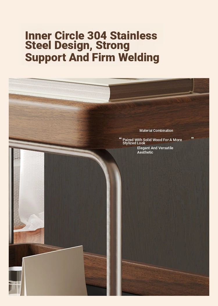 Elegant Solid Wood and Resin Serving Cart with Stainless Steel Frame - Stylish Home Bar and Storage Solution hsms-4906
