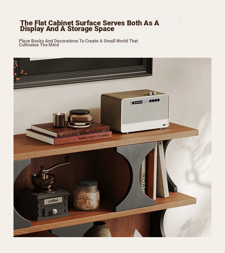 Stylish Multi-Layer Board Cabinet Bookcase - Modern Design with Unique Curved Shelves for Living Room & Home Decor hsms-4933