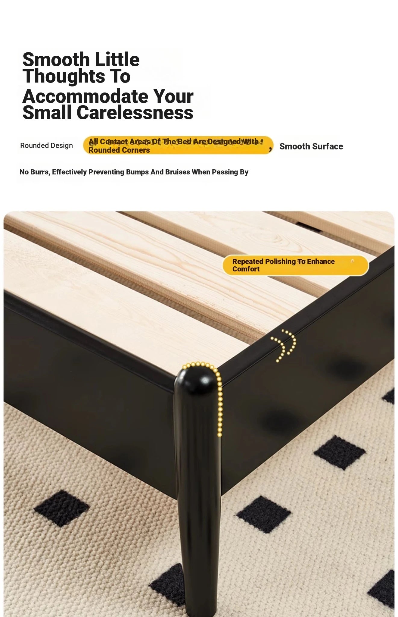 Elegant Black Bed Frame with Synthetic Leather Headboard and Foam Comfort – Multi-Layer Oak & Pine Construction hsxz-2164