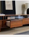 Stylish Solid Wood TV Cabinet with Glass Doors - Modern and Functional Living Room Furniture hsxz-2193