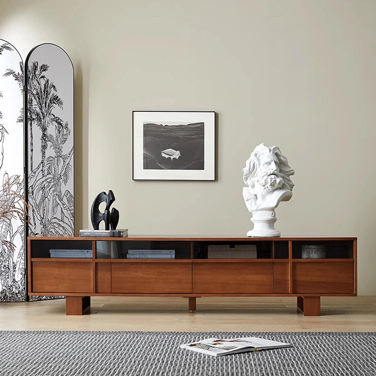 Stylish Solid Wood TV Cabinet with Glass Doors - Modern and Functional Living Room Furniture hsxz-2193