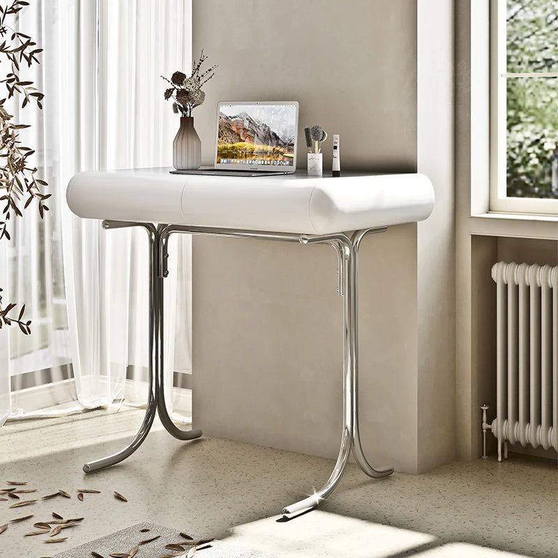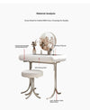 | A Better Home Starts with BICROOM | **Eco-Friendly Design**: Elevate your beauty routine with our Makeup Table crafted from eco-friendly plates and sustainable materials. Enjoy a guilt-free pampering experience that’s kind to the planet. **Sophisticated Elegance**: This stylish Makeup Table features a sleek stainless steel frame paired with a modern glass surface, effortlessly adding a touch of sophistication to your bedroom or dressing area. **Ample Storage Space**: With its multi-layer board design, this Makeup Table provides ample storage space for your beauty essentials and accessories, keeping everything organized and within easy reach. **Durable and Stylish**: Constructed with density board and high-quality materials, this Makeup Table is not only durable but also stylish, making it a perfect addition to any contemporary home décor. **Perfect for Any Space**: Whether you have a small apartment or a spacious room, this versatile Makeup Table fits seamlessly into any environment, allowing you to create your personalized beauty haven. **Comfortable Experience**: Complete with a matching stool, this Makeup Table ensures you enjoy comfortable seating while applying your makeup, enhancing your overall experience every day. |