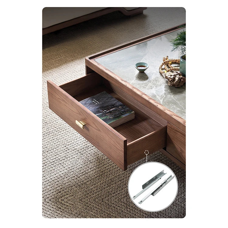 Stylish Ash Wood Coffee Table with Sintered Stone Top and Storage Drawers - Modern Living Room Furniture hyc-3116