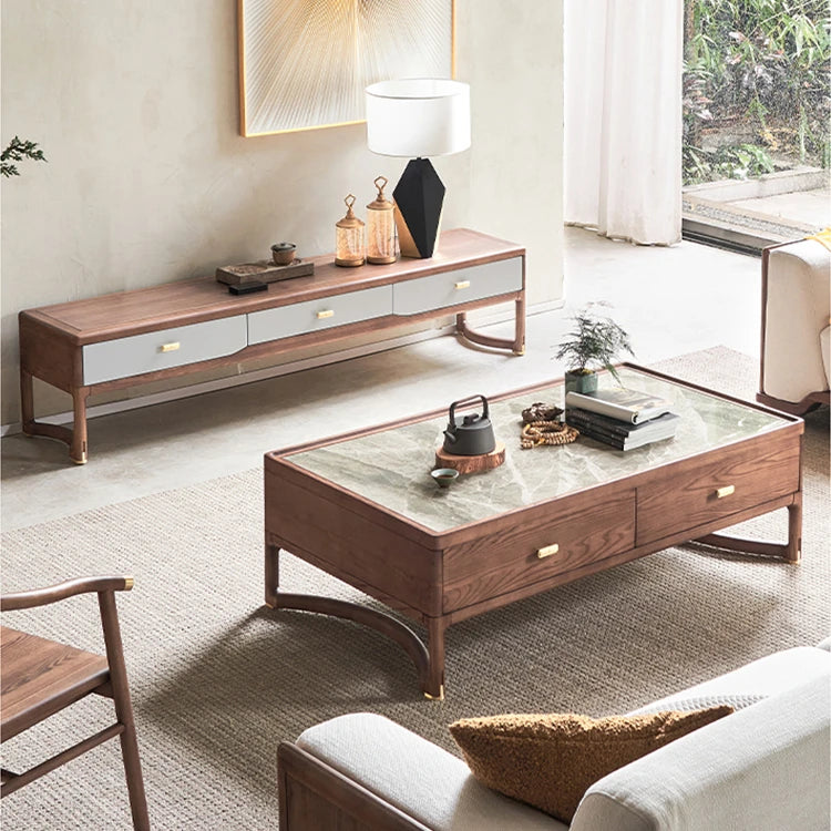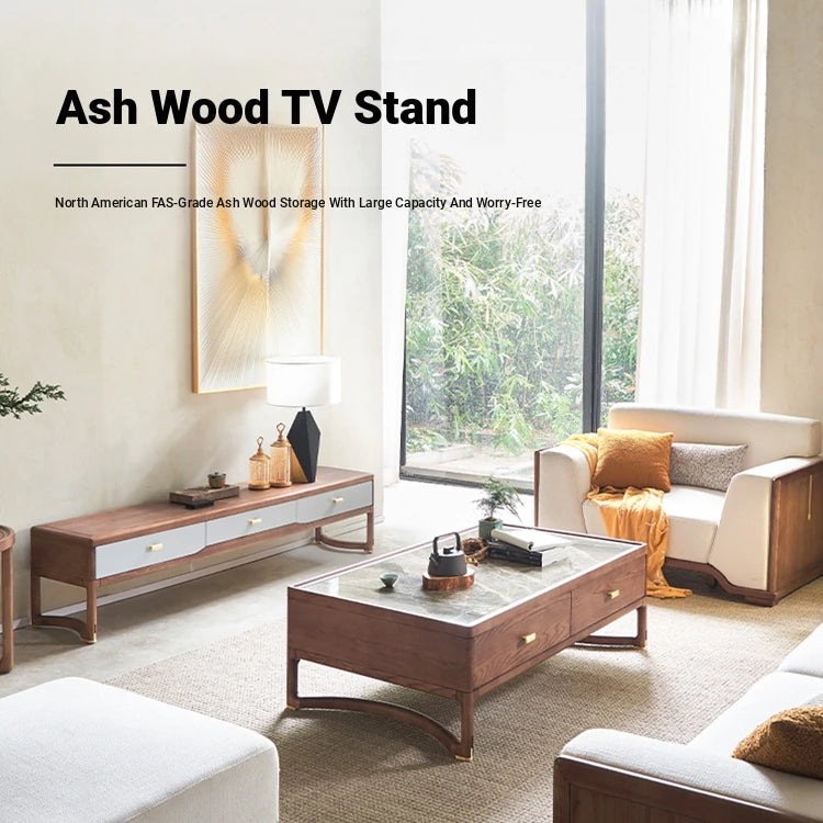 Stylish Ash Wood TV Cabinet with Storage Drawers - Modern Living Room Furniture hyc-3117