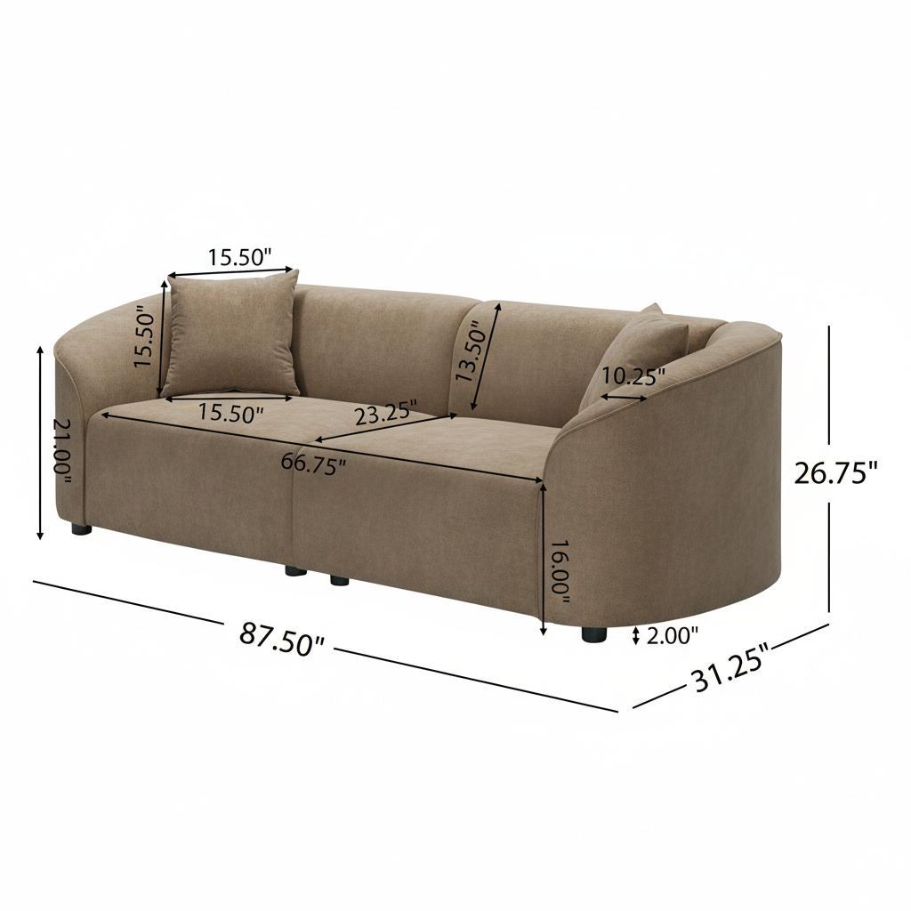 87' Curved Contemporary Sofa in Brown: Plush Seating, Streamlined Design, and Durable Frame ? Ideal for Stylish Living Spaces-N767P422840W