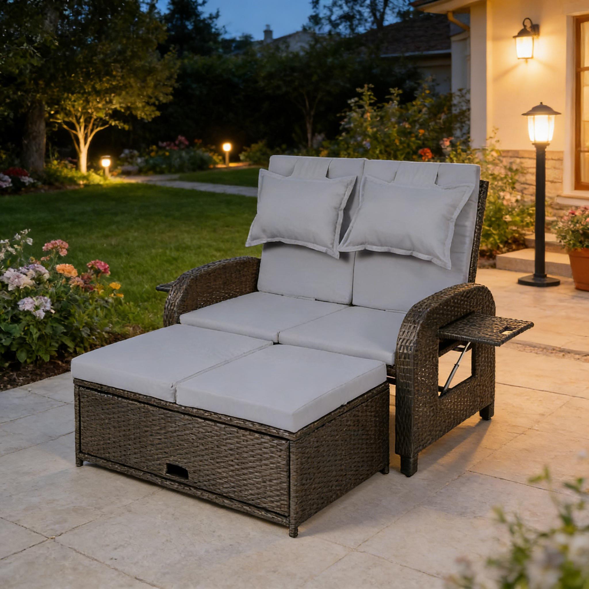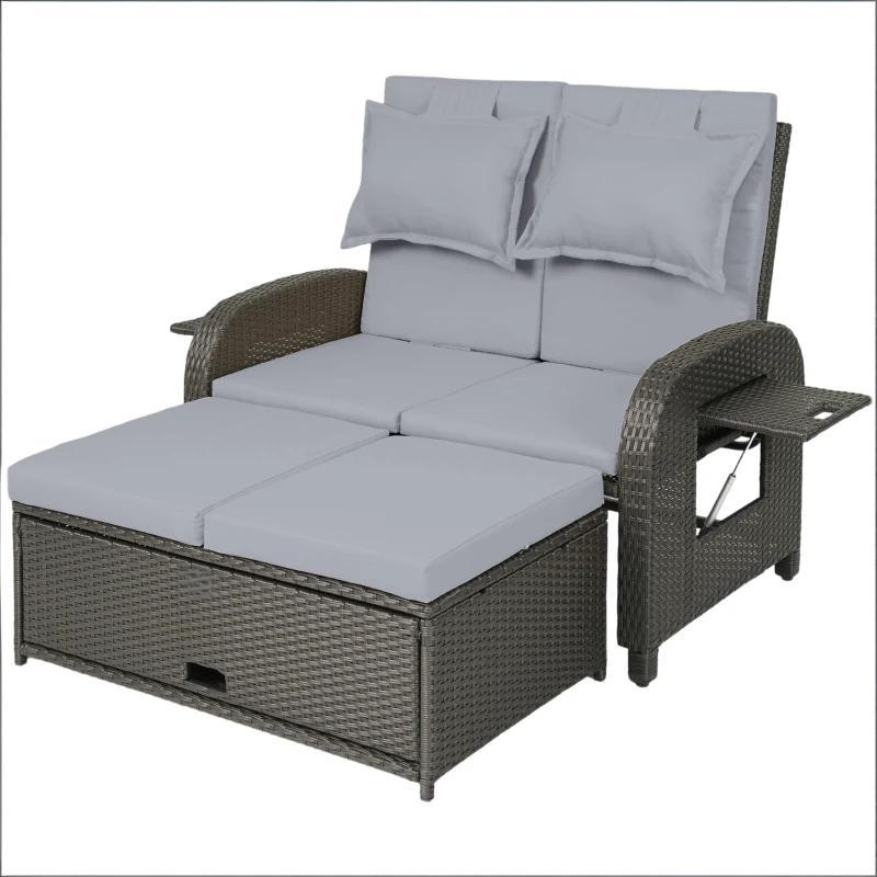 3-in-1 Convertible Design Reclining Sofa,Wicker Outdoor Daybed,Rattan Daybed-T3971P480968
