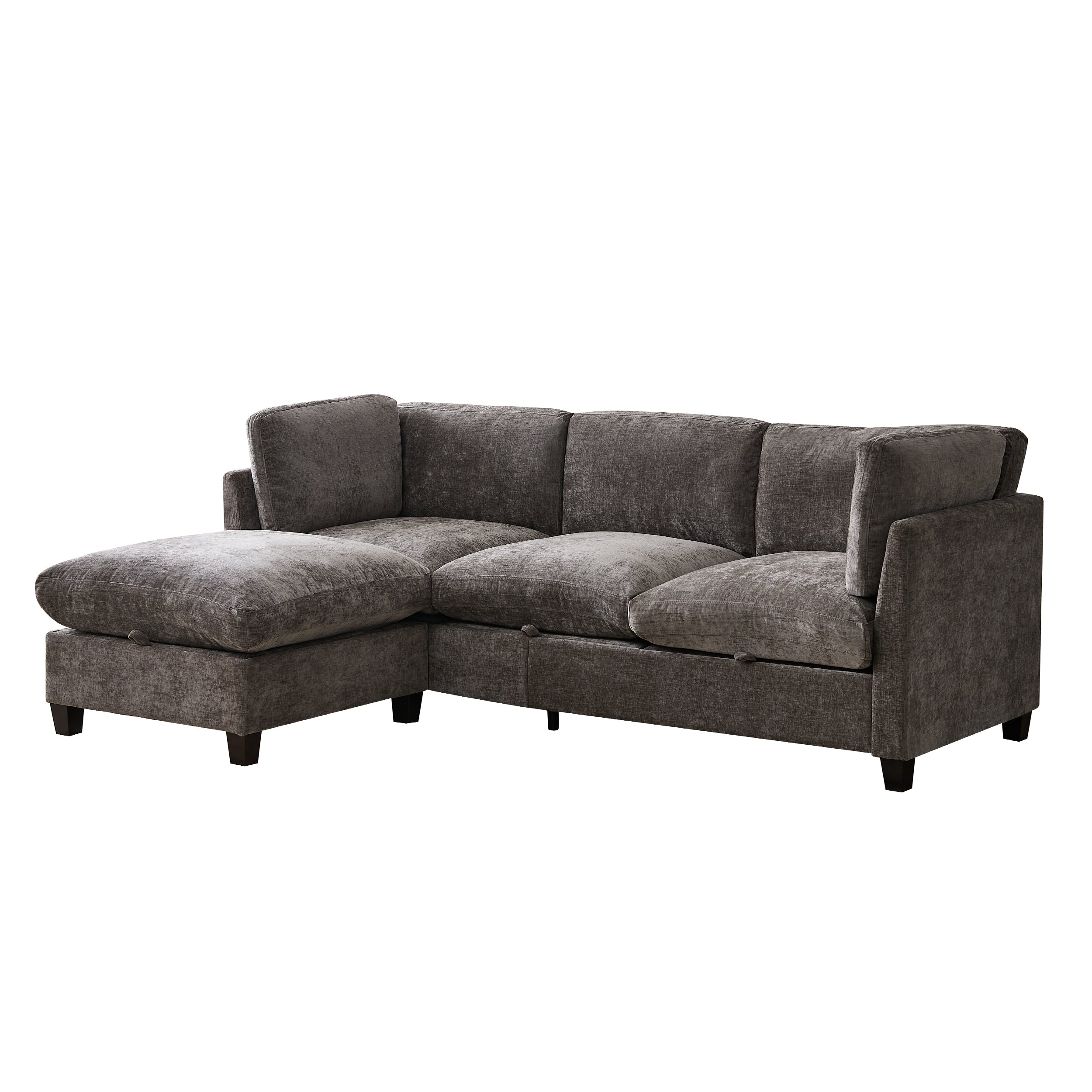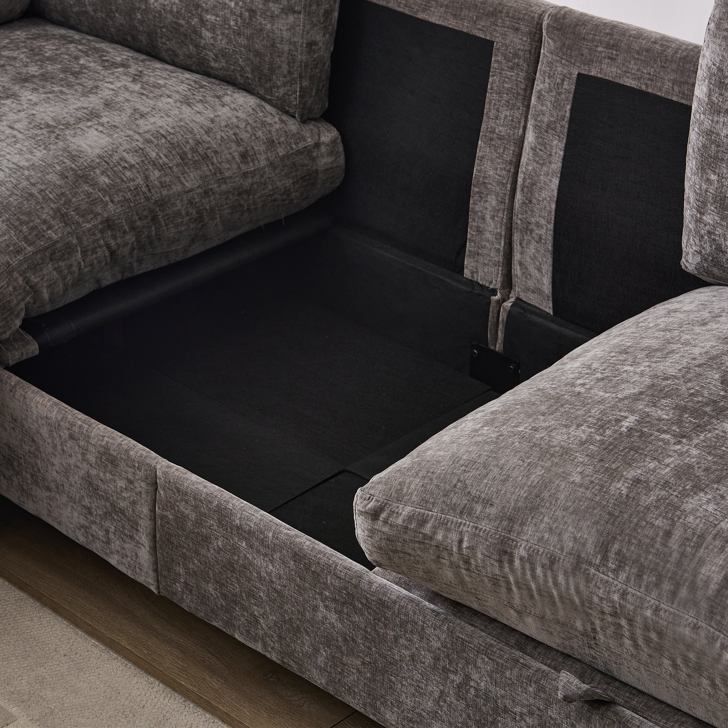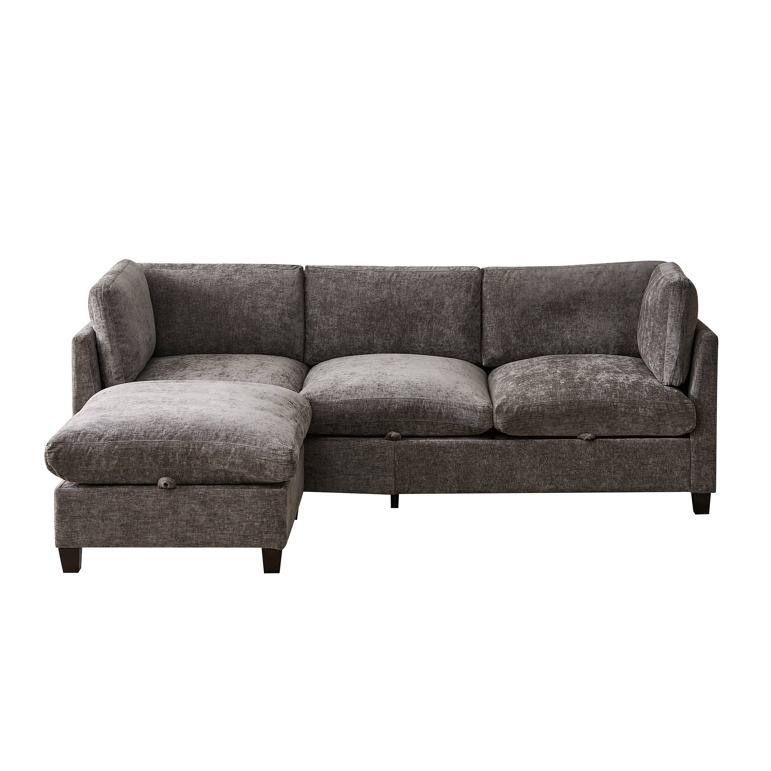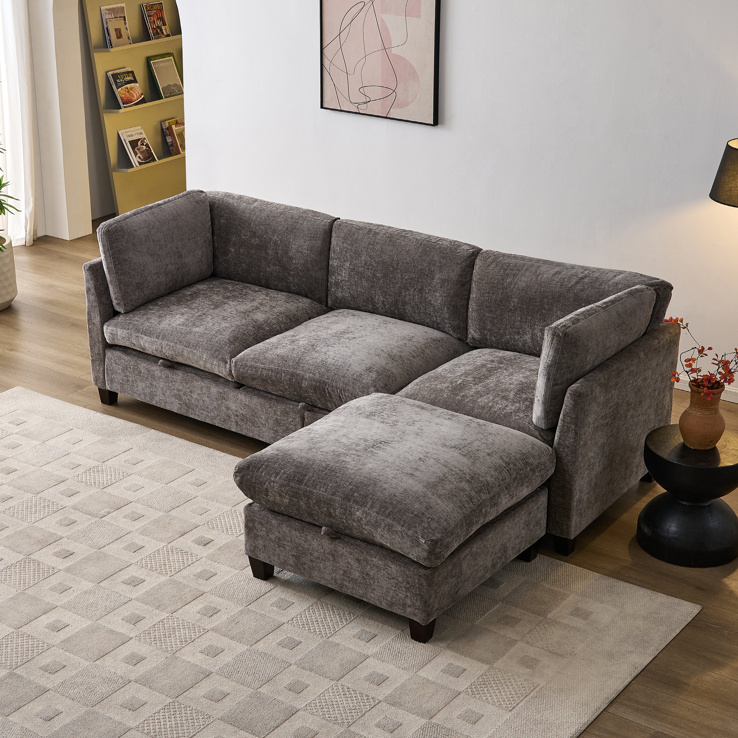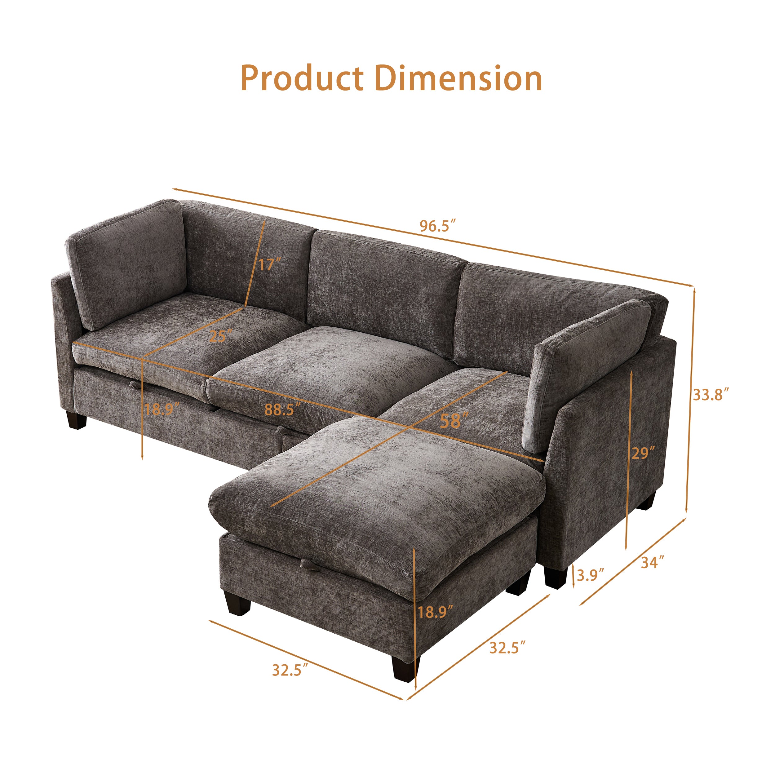 96.5' Sectional Couch for Living room, Upholstered Soft Chenille Fabric Sofa, 3-Seater with One Ottoman L Shape Sofa Gray-W1097S00280